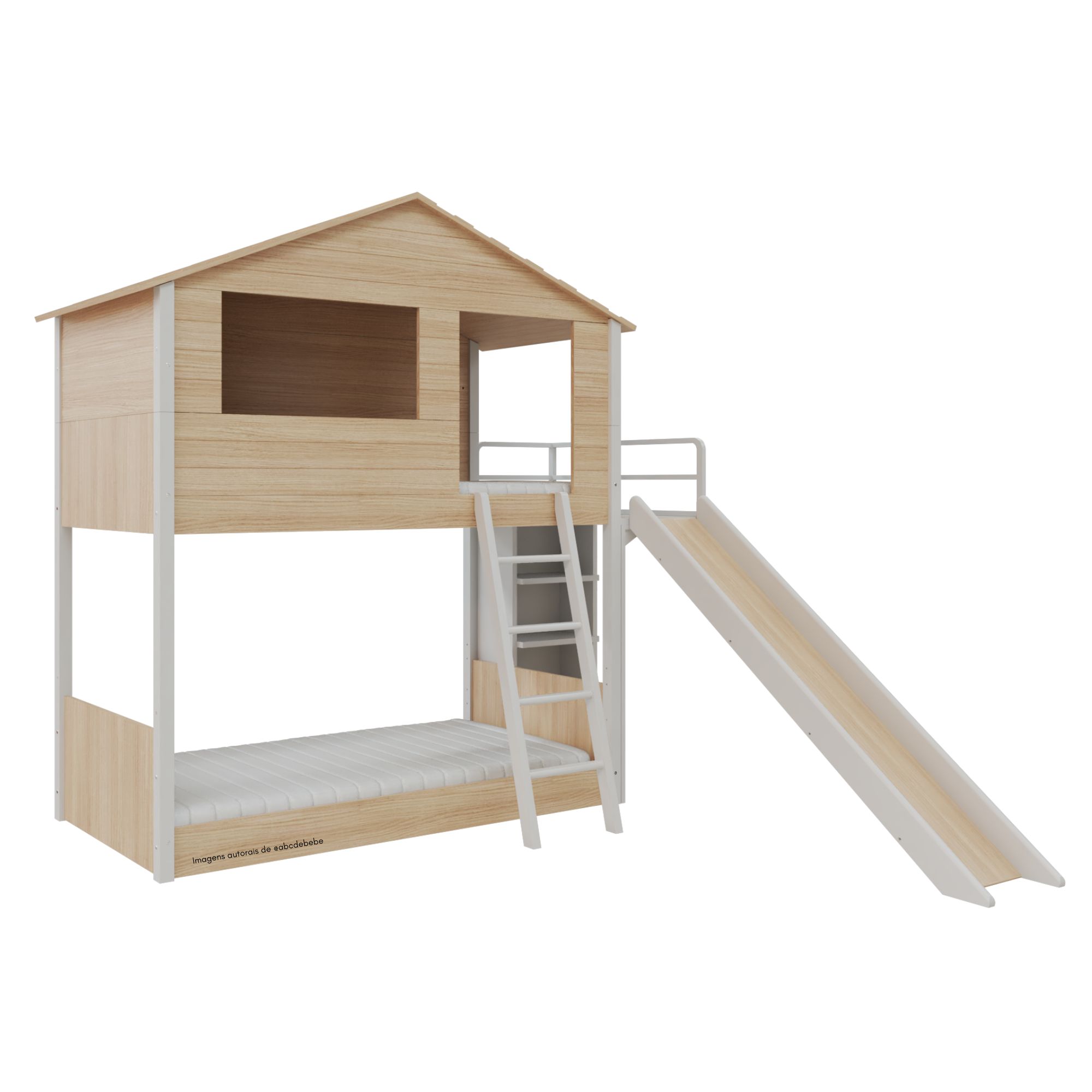 Para deixar o quarto ainda mais divertido, o beliche pode ser comprado junto com outras peças que completam a Casinha Montessoriana: