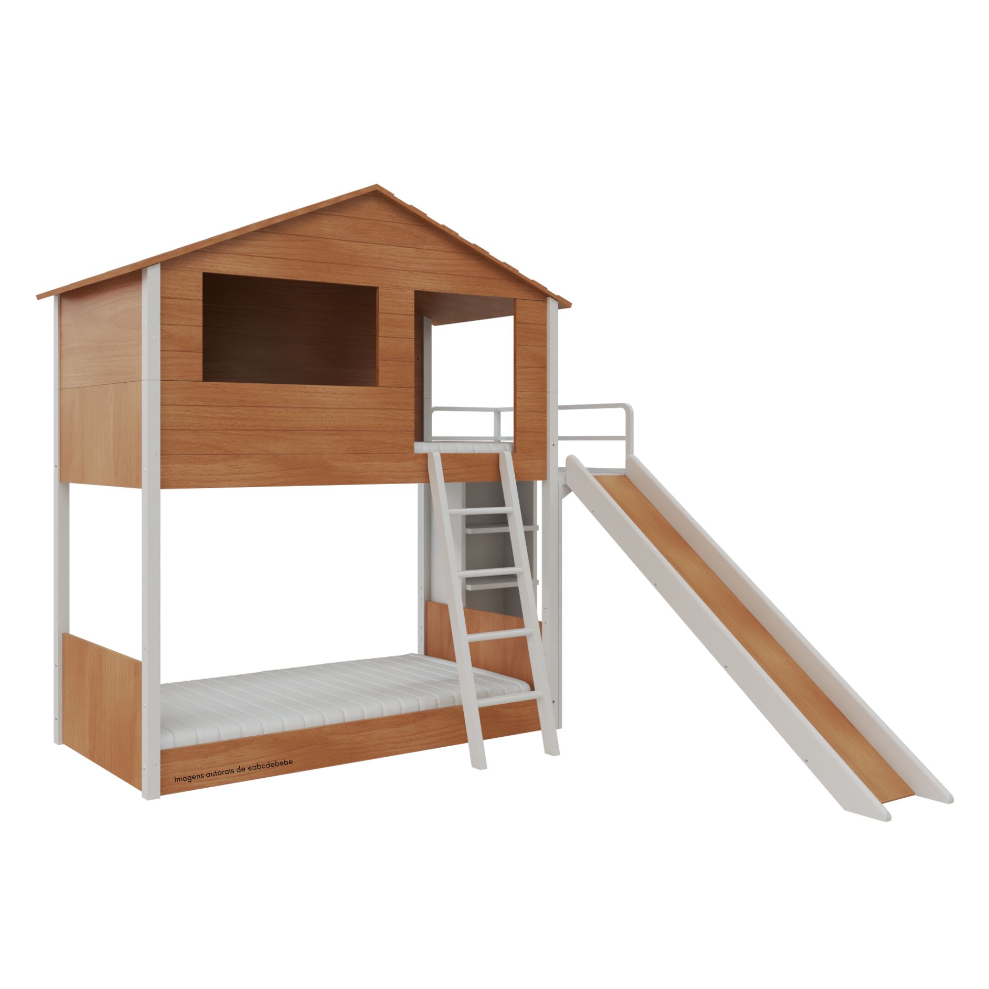 Para deixar o quarto ainda mais divertido, o beliche pode ser comprado junto com outras peças que completam a Casinha Montessoriana:
