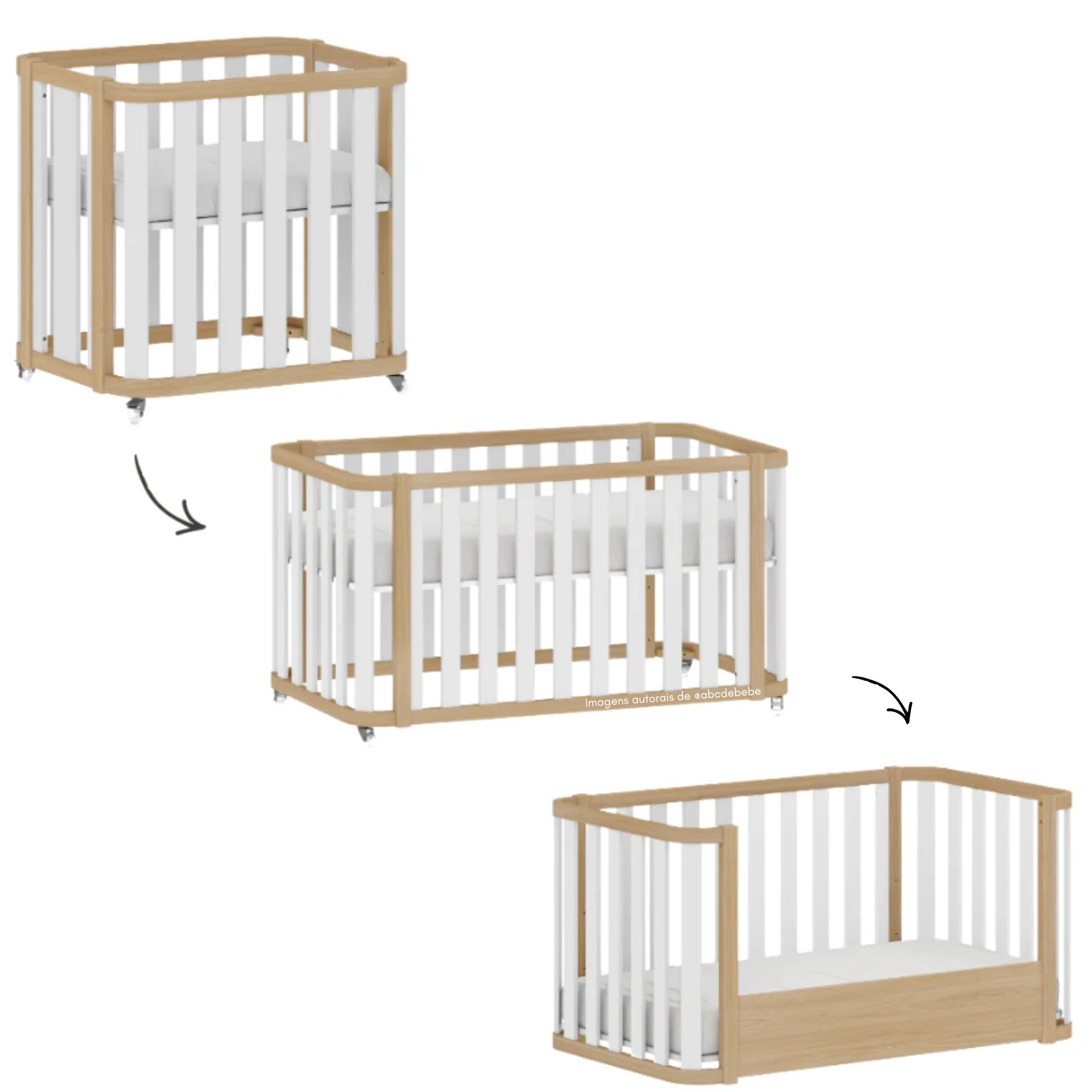 • ✨ 3 transformações: Mini Berço, Berço Americano e Mini Cama (peças inclusas)