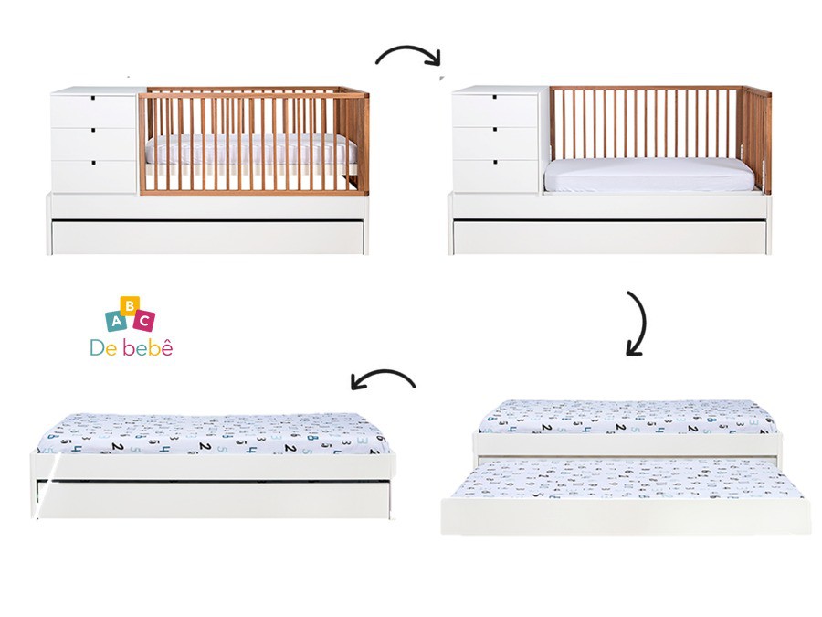 É um berço, multiuso com grades ergonômicas em madeira maciça de jequitibá e acabamento laqueado, que irá acompanhar o seu bebê se transformando em peças avulsas de grande funcionalidade, trazendo mais funcionalidade ao ambiente e prolongando o seu tempo de uso! o berço oferece módulo trocador com gavetas telescópicas e nichos laterais e cama auxiliar.