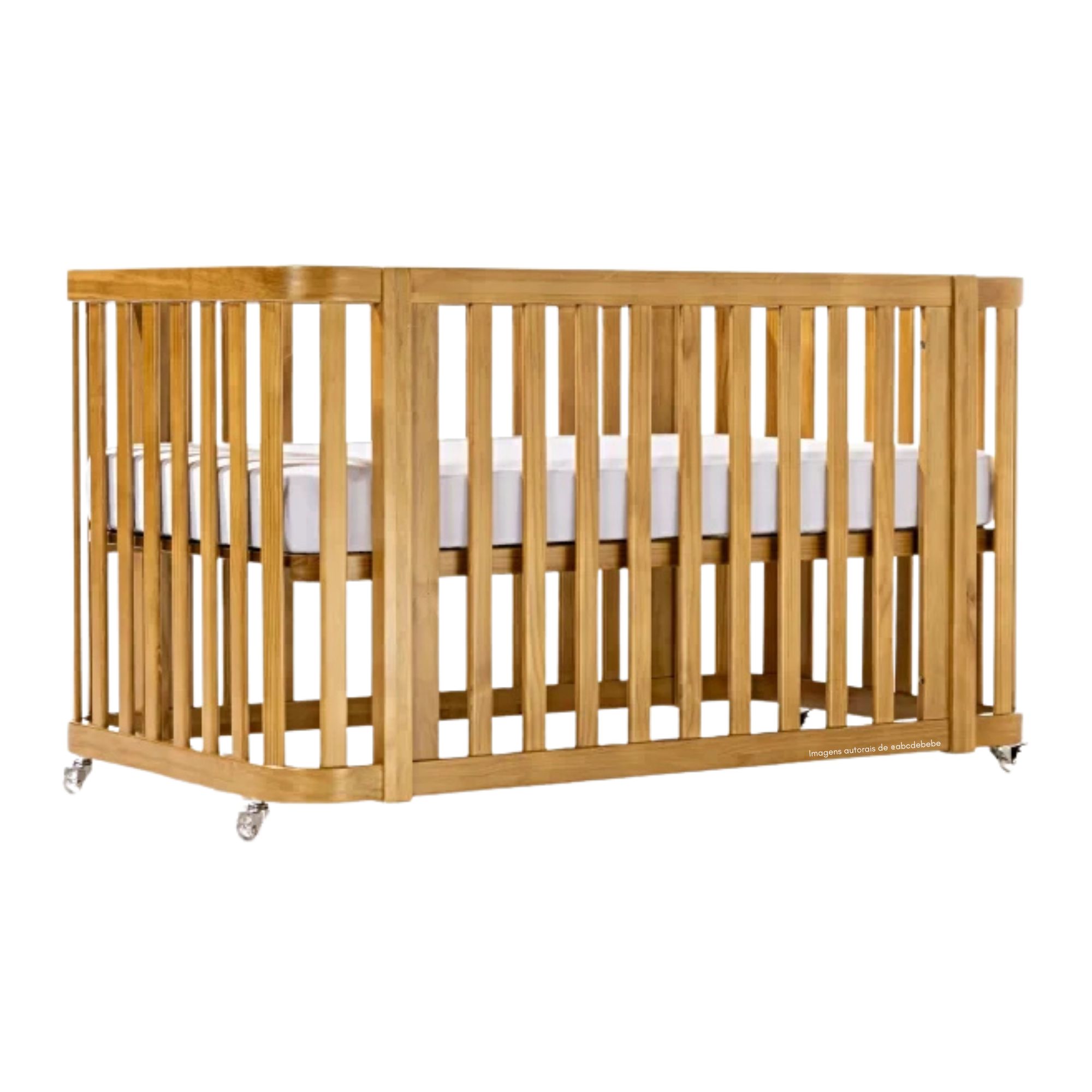 Equipado com rodinhas com travas, o berço pode ser movimentado com facilidade para limpeza ou reorganização do ambiente, mantendo total segurança quando travado.