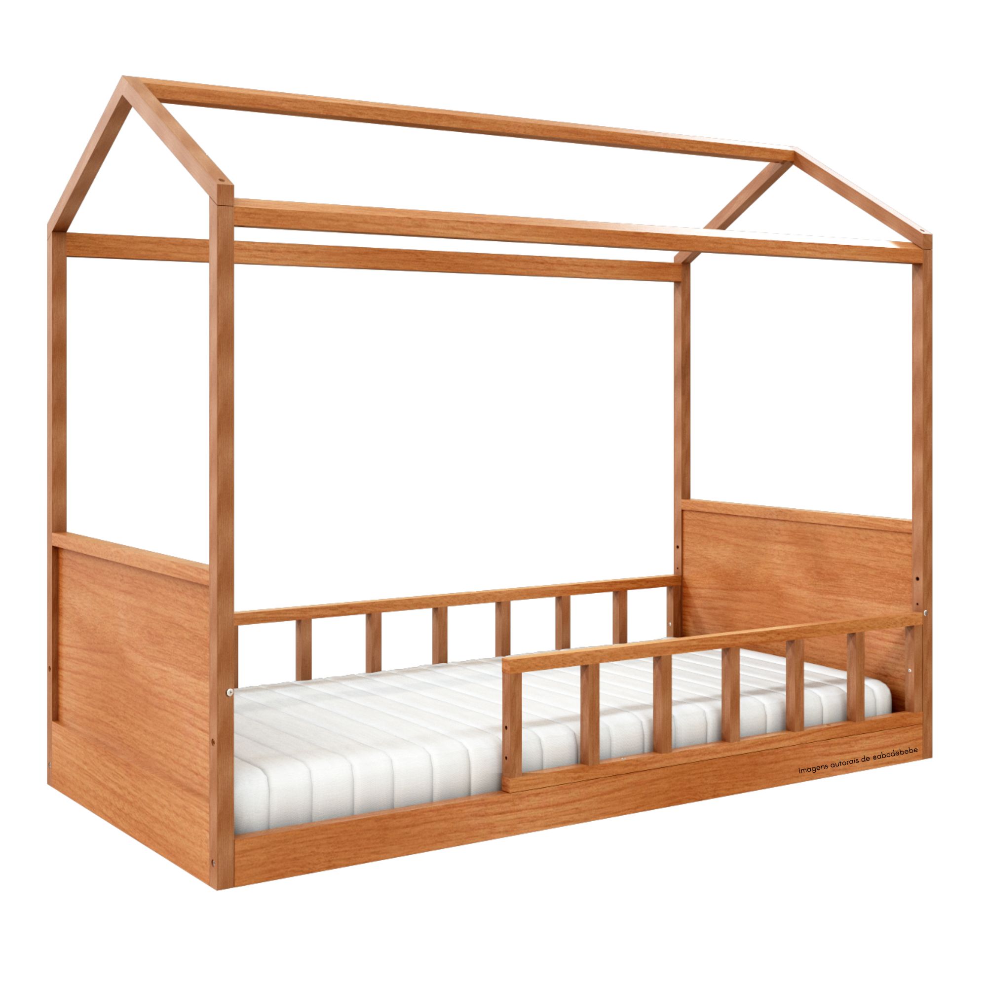 Produzida em madeira de reflorestamento e MDF de eucalipto de alta resistência, a cama possui acabamento em Jequitibá com pintura atóxica e resistente ao amarelamento, garantindo durabilidade, beleza e segurança para o ambiente infantil 🌿.