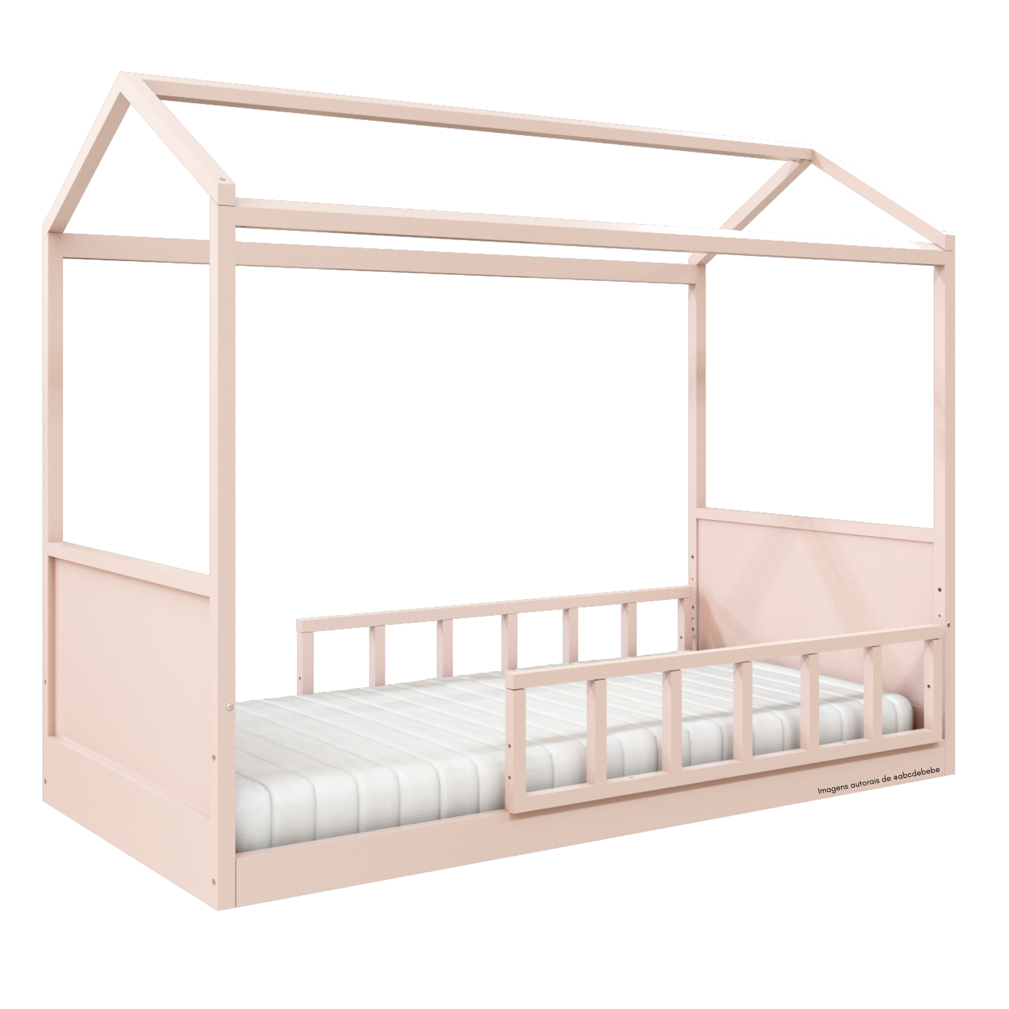 Cama Casinha Link - Com 2 Meias Grades Palitadas - Rosa Old
