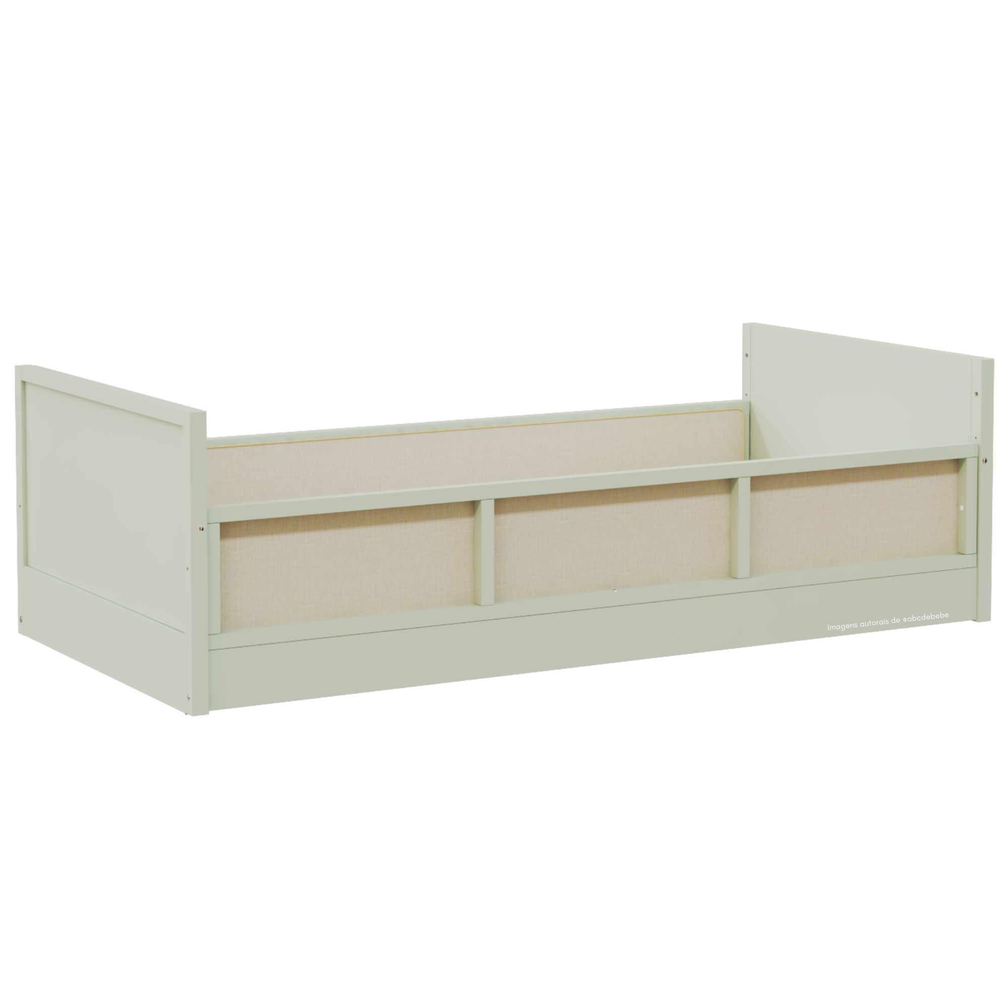 Cama Infantil Link - Com 2 Grades Em Palha Natural - Verde Old