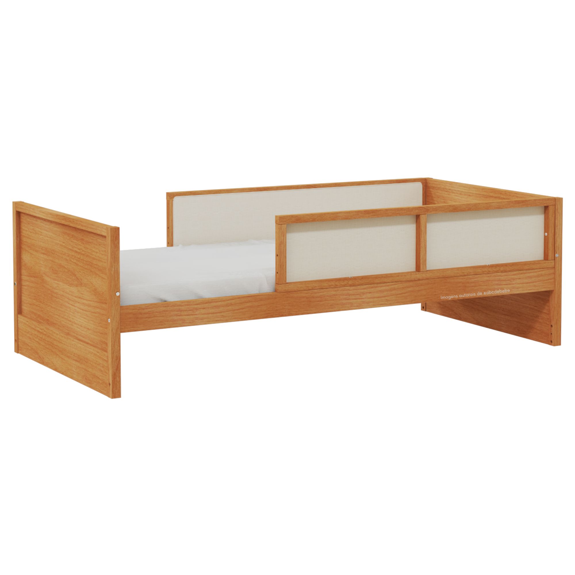 Produzida em madeira de reflorestamento com acabamento jequitibá e barras de MDF cru de eucalipto, a cama é durável e resistente, ideal para o uso diário. Sua pintura atóxica e resistente ao amarelamento mantém a peça bonita por muito mais tempo, sem agredir o meio ambiente.