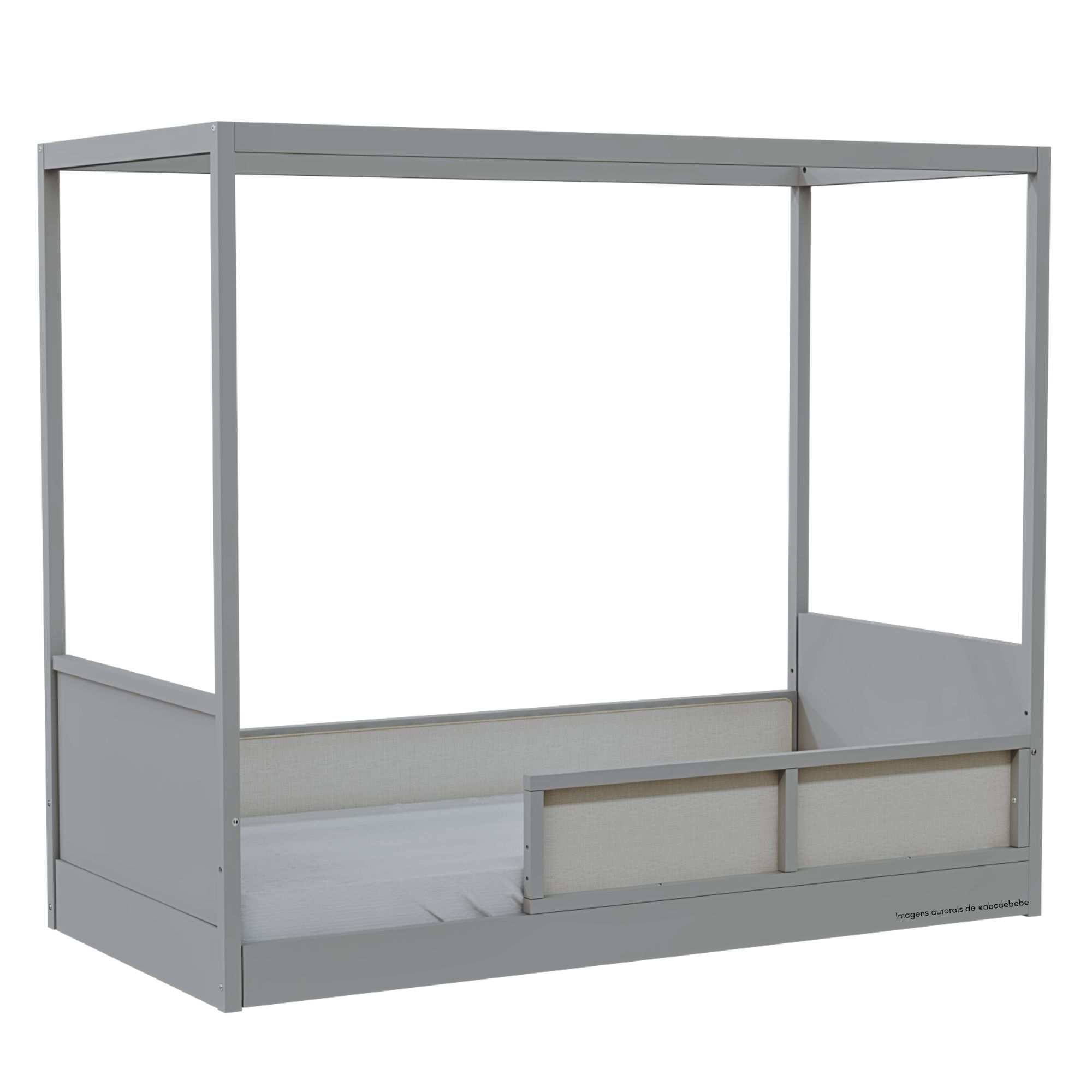 Cama Link Com Dossel - Com 1 Grade E Meia Em Palha Natural - Cinza