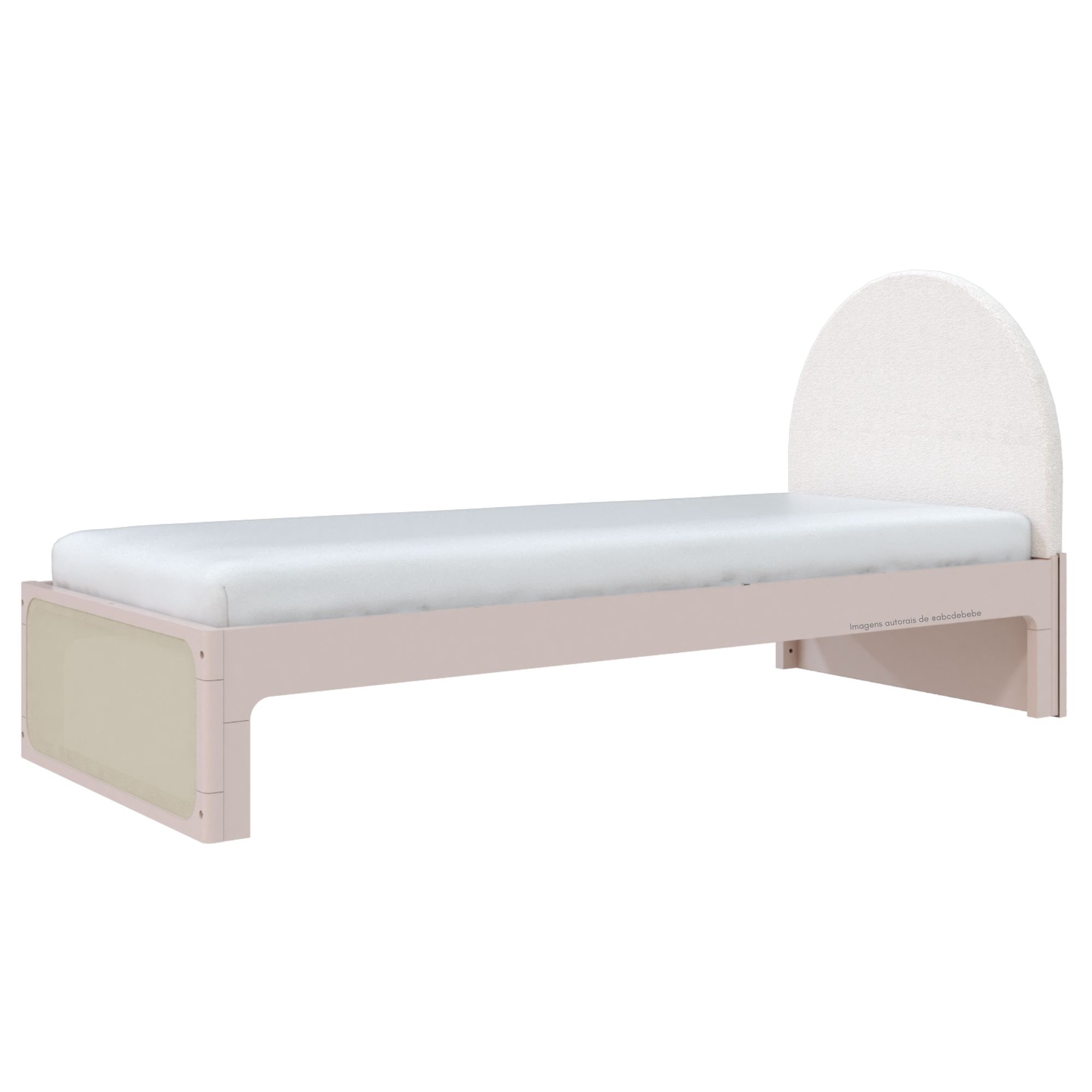 Cama Skandi Com Cabeceira Estofada - Boucle Creme / Rosa Old