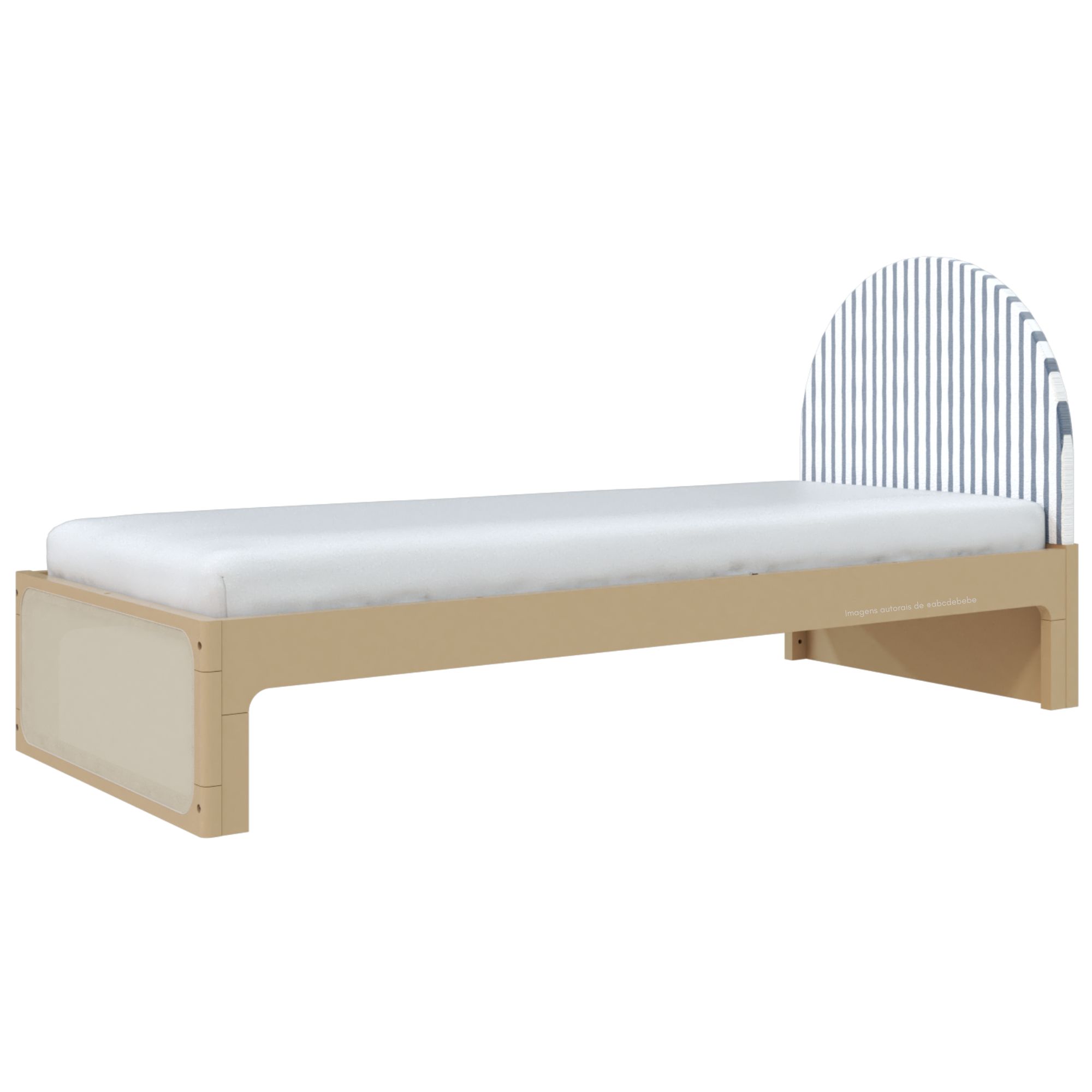 Cama Skandi Com Cabeceira Estofada - Sarja Listra Anis / Capuccino