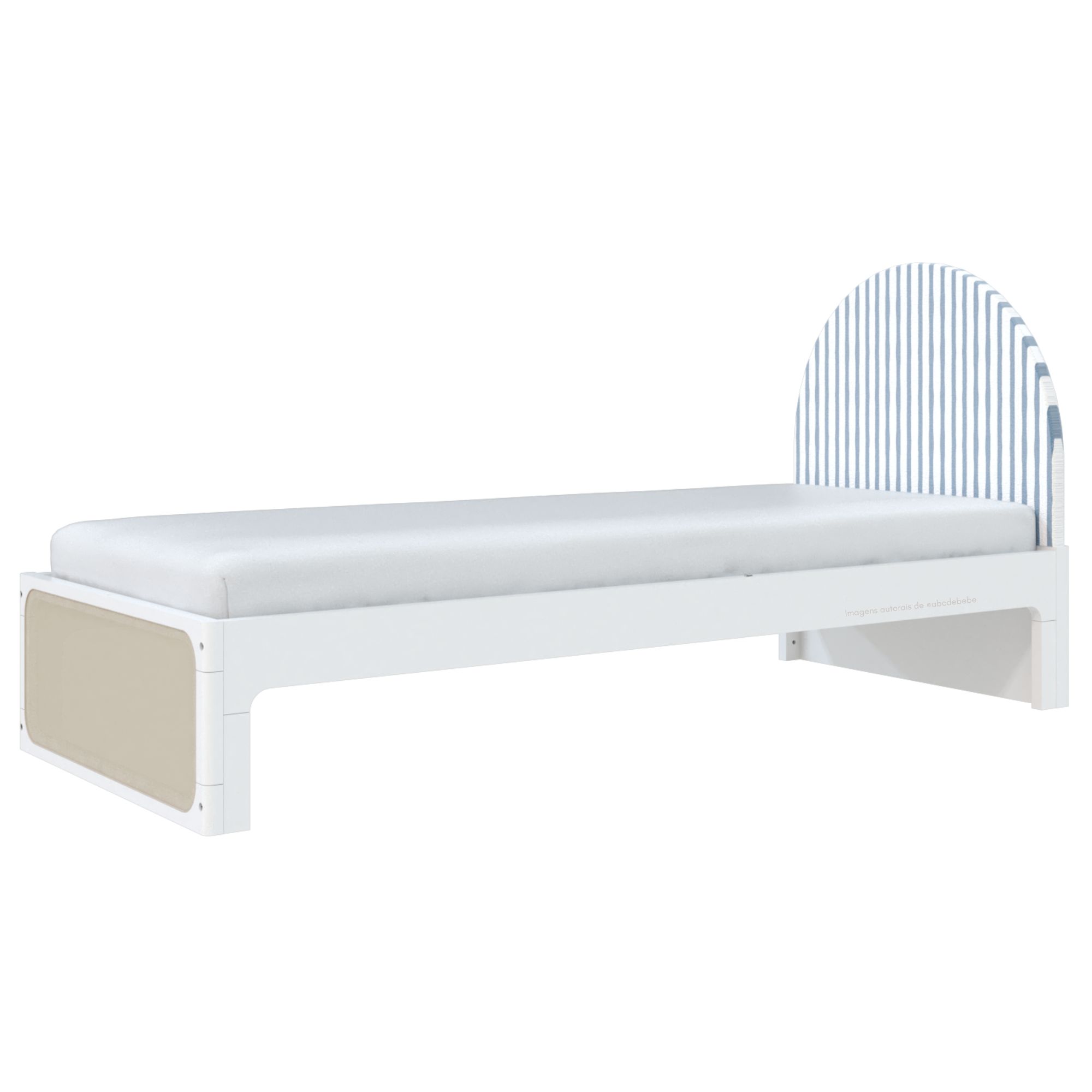 Cama Skandi Com Cabeceira Estofada - Sarja Listra Azul Sereno / Branco
