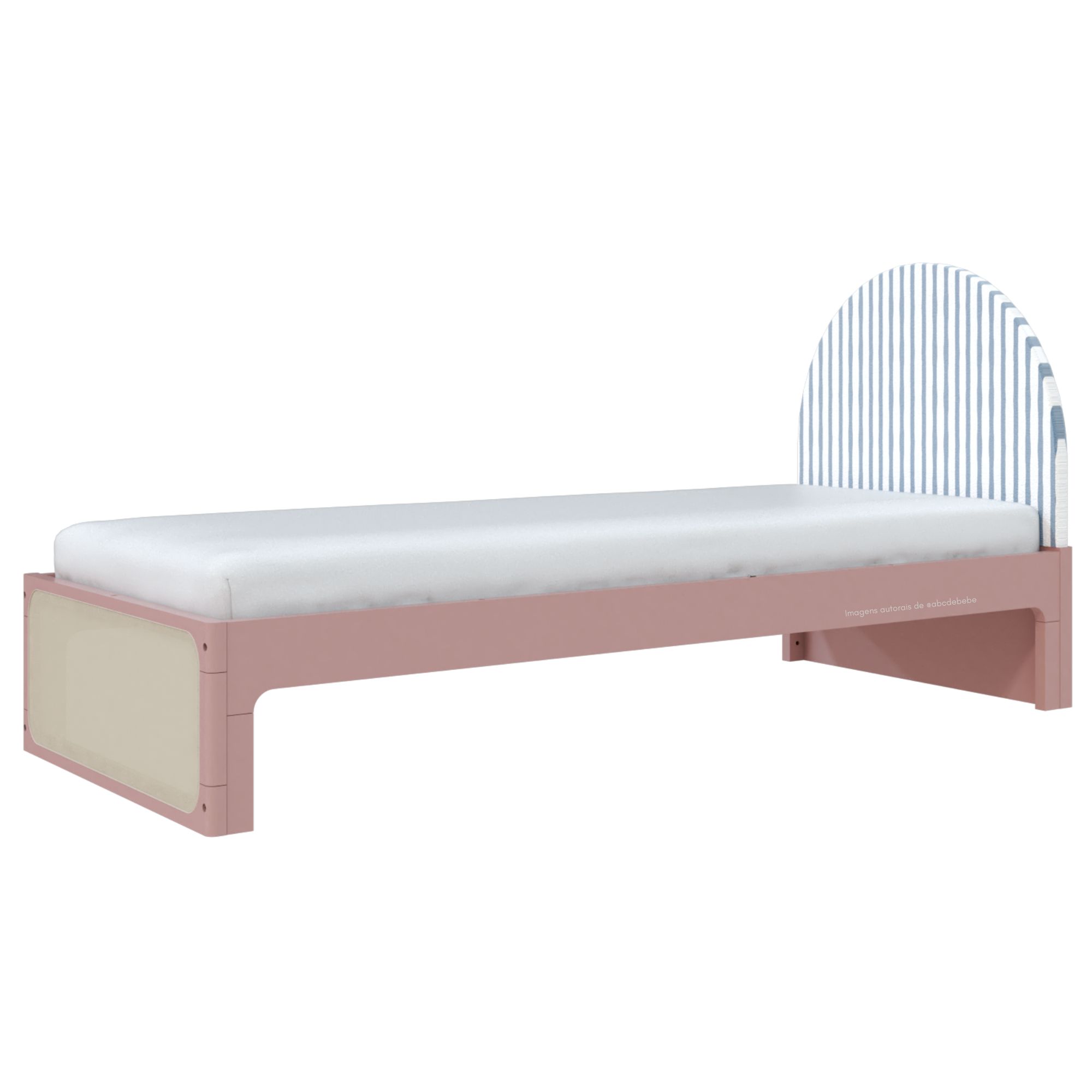 Cama Skandi Com Cabeceira Estofada - Sarja Listra Azul Sereno / Rose