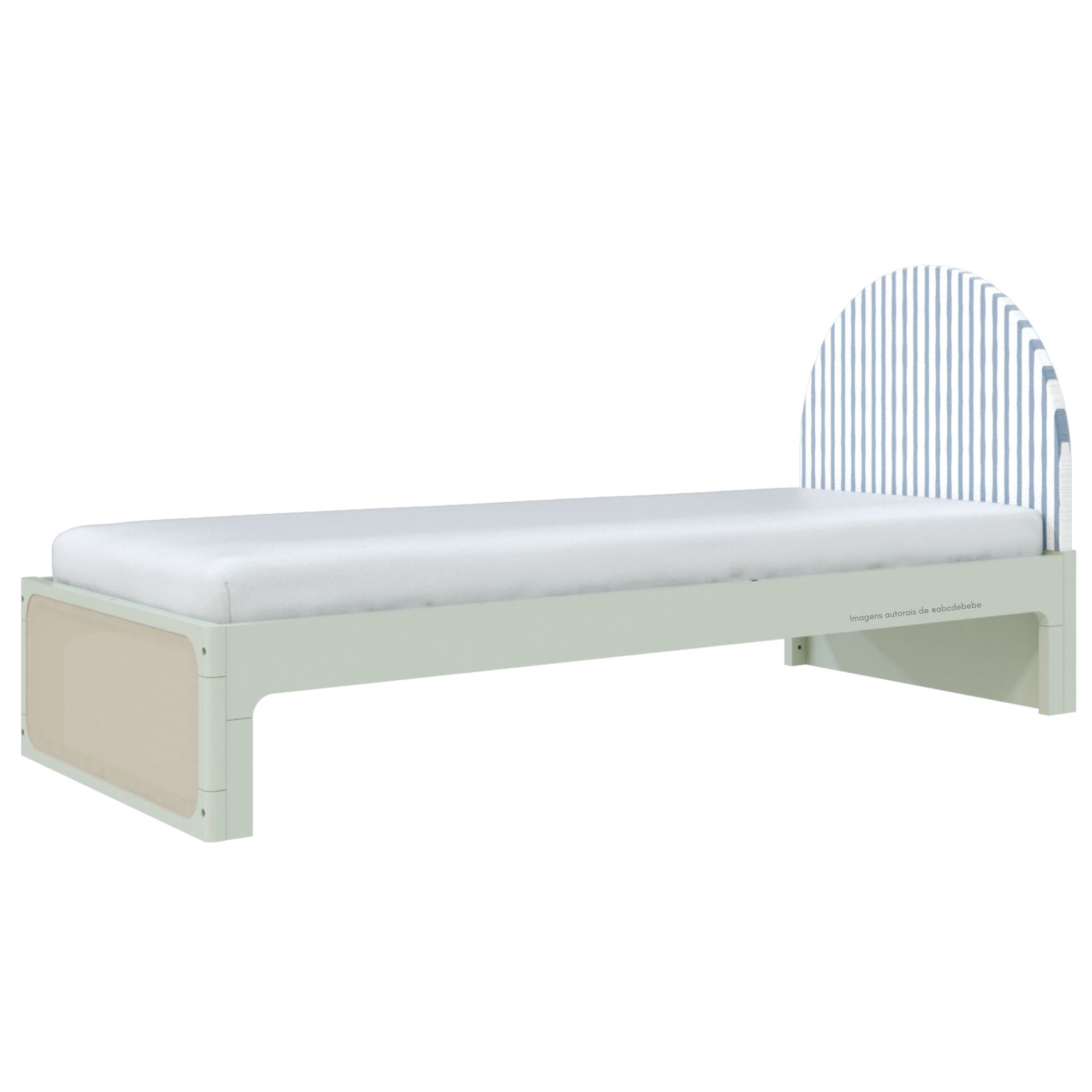 Cama Skandi Com Cabeceira Estofada - Sarja Listra Azul Sereno / Verde Old