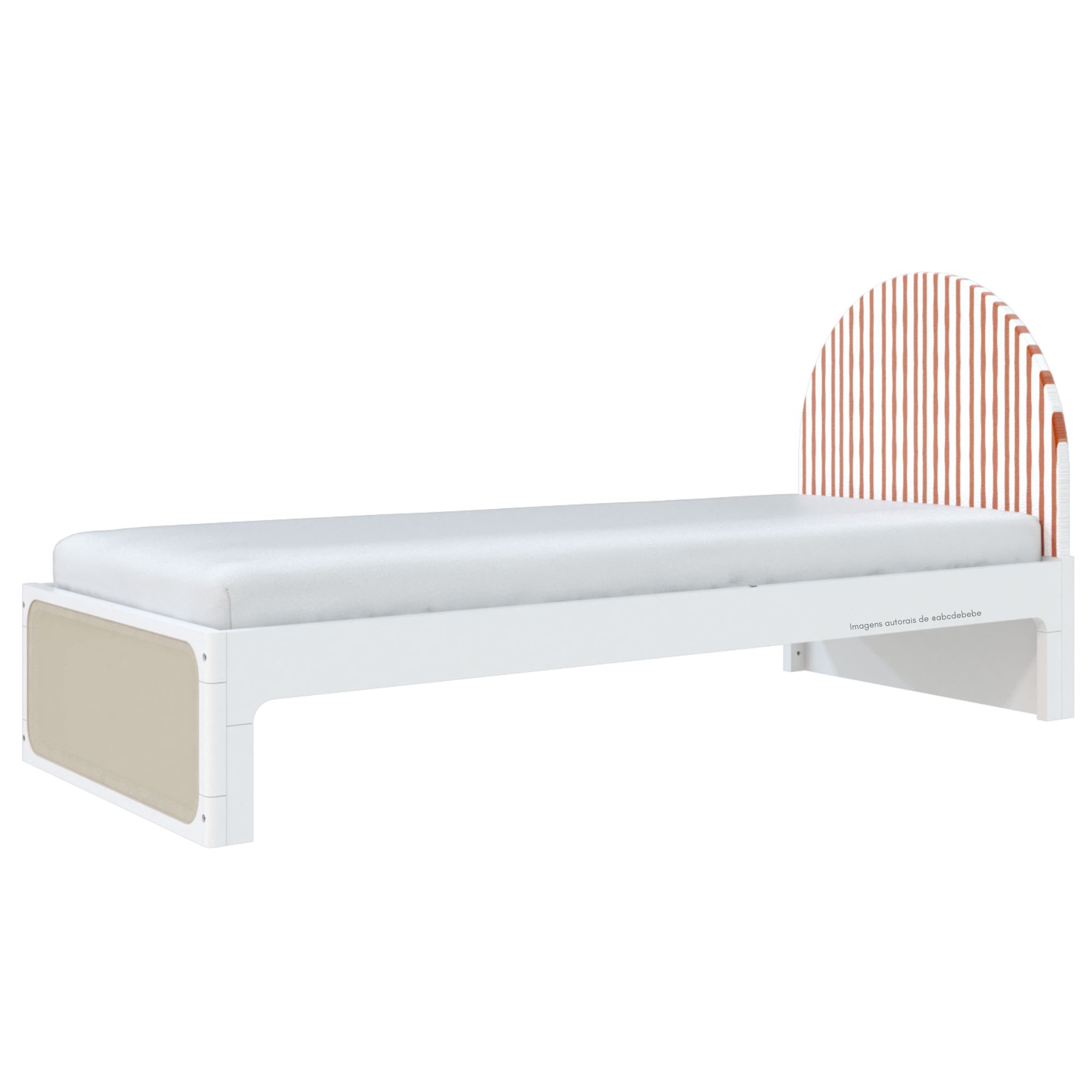 Cama Skandi Com Cabeceira Estofada - Sarja Listra Páprica / Branco