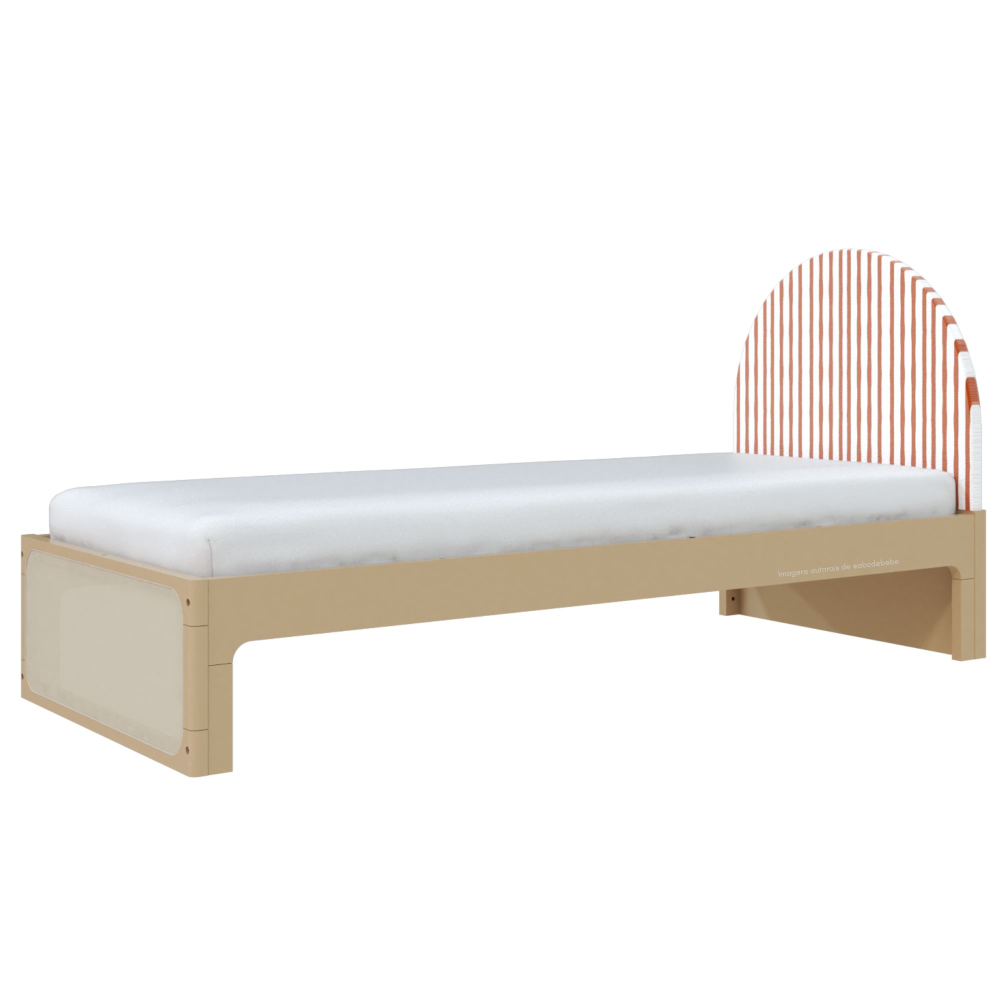 Cama Skandi Com Cabeceira Estofada - Sarja Listra Páprica / Capuccino
