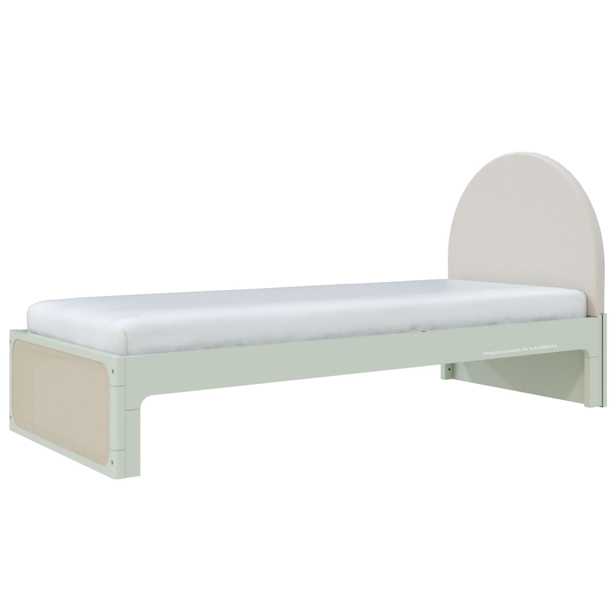 Cama Skandi Com Cabeceira Estofada - Veludo Bege / Verde Old
