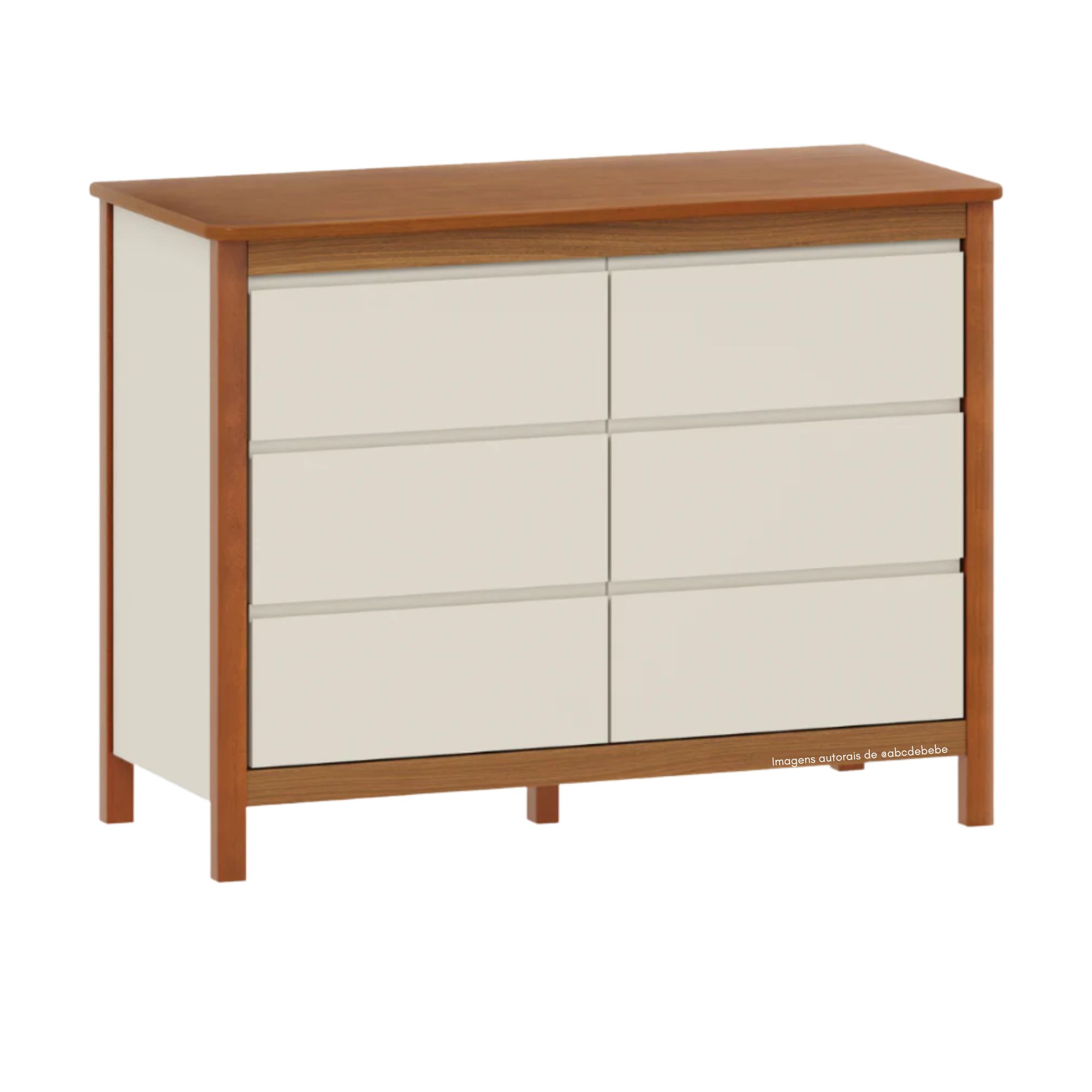 Cômoda 6 Gavetas Softy - Areia Com Nogueira
