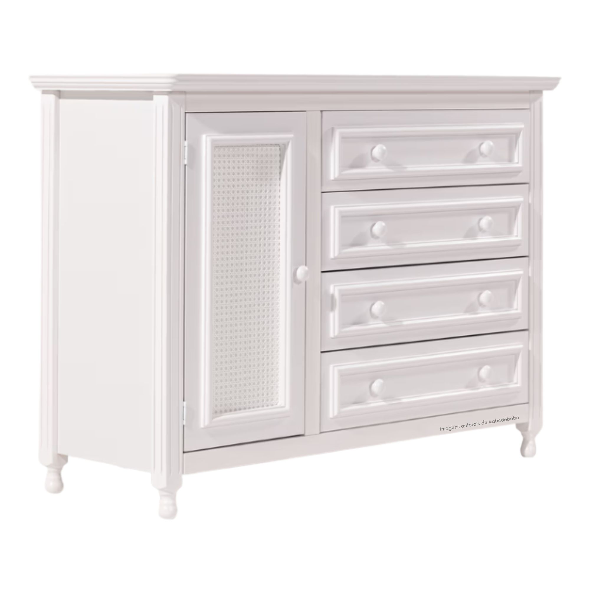 A Cômoda Infantil Feliz foi criada para quem busca um móvel sofisticado, funcional e com acabamento impecável. Seu design clean, combinado à porta com tela trançada artesanalmente, transforma a cômoda em um destaque elegante para o quarto do bebê, trazendo leveza e textura ao ambiente 🧸✨