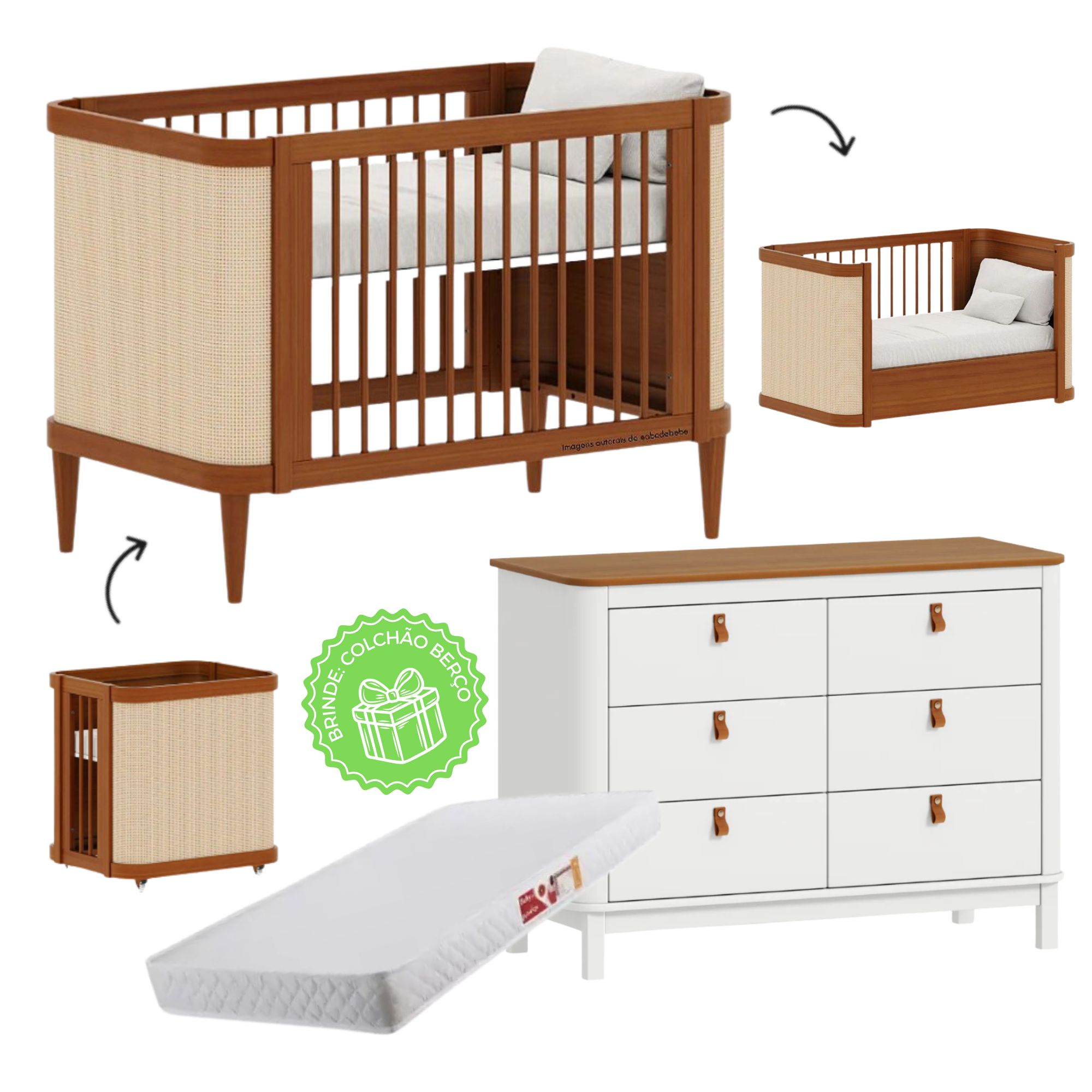 O Conjunto Paglia + Cômoda Cromo na cor Nogueira com Palhinha Natural é a combinação perfeita entre o design artesanal e a modernidade. Unindo o Berço 3 em 1 Paglia, reconhecido por seu charme e versatilidade, à Cômoda Cromo com tampo em madeira, o conjunto cria um ambiente elegante, funcional e acolhedor para o quarto do bebê 💕.