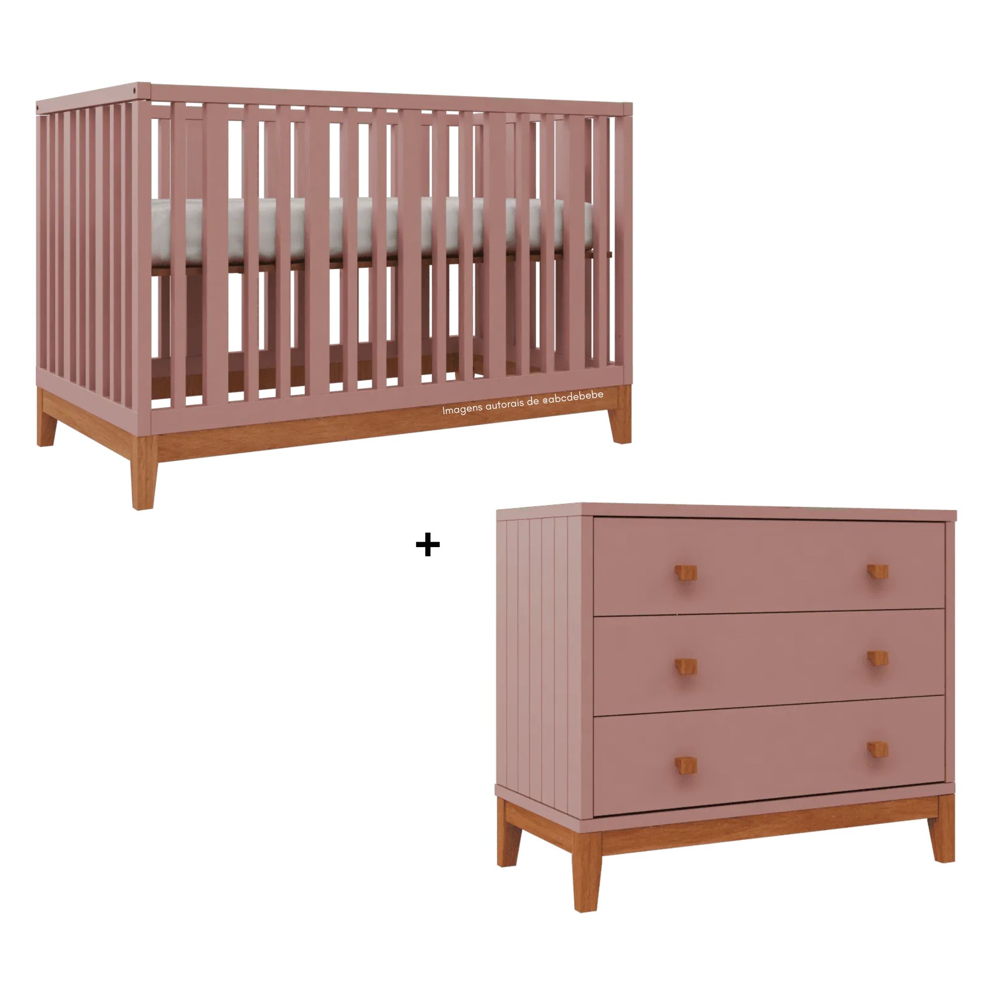Conjunto Berço + Cômoda Fio Plus - Rose