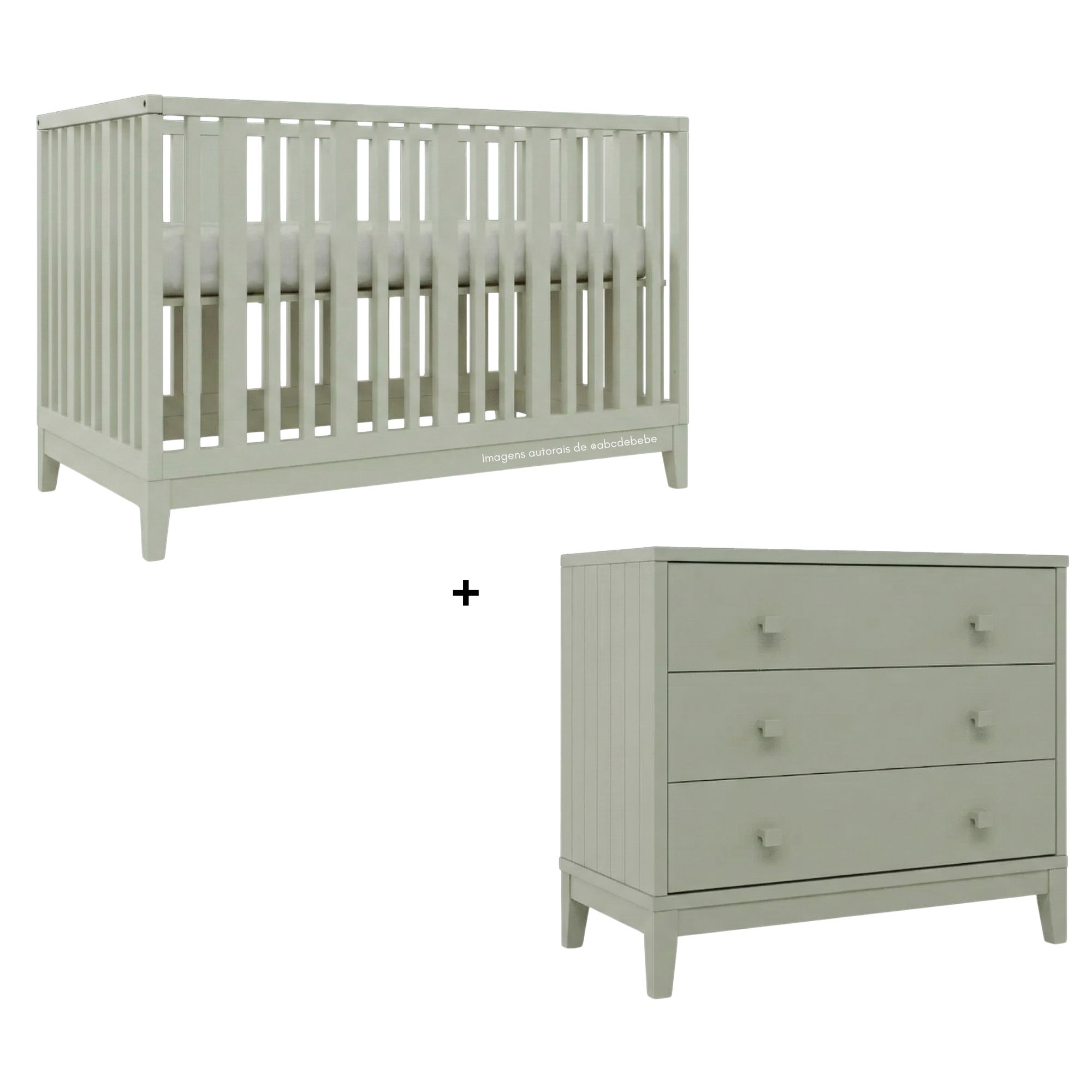 Conjunto Berço + Cômoda Fio Plus - Verde Old