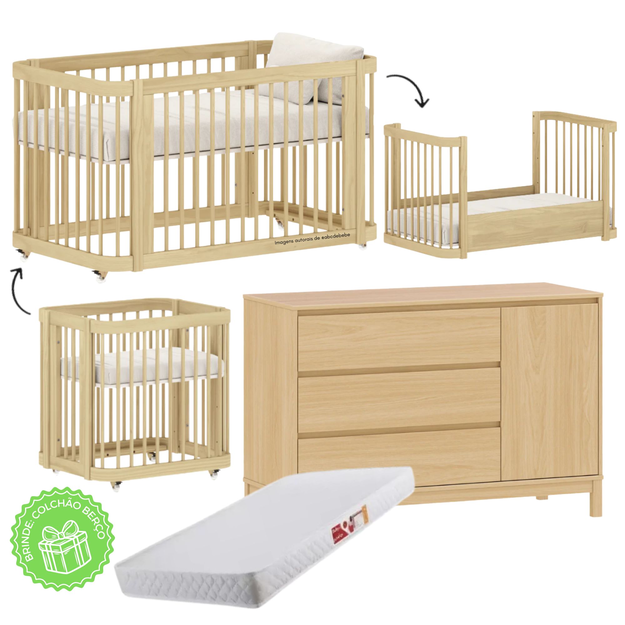 💖 O Conjunto Berço Evolutivo 3 em 1 + Cômoda Soley é a união perfeita entre sofisticação e funcionalidade — com design moderno, acabamento em Carvalho Malva e colchão de brinde para o conforto do seu bebê desde o primeiro dia!