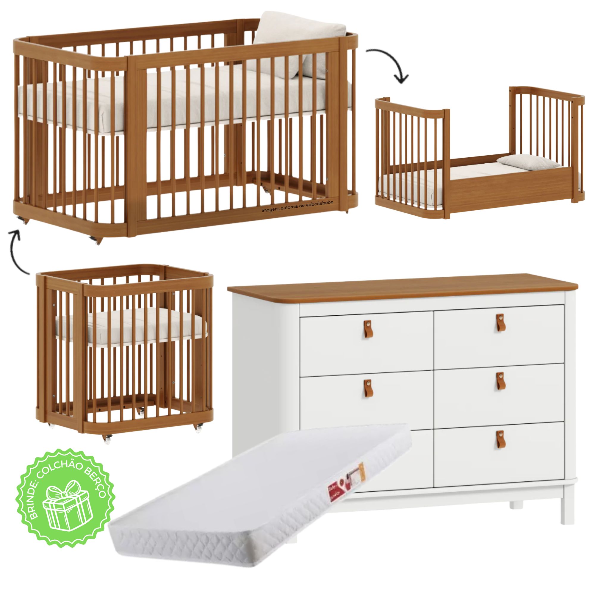 O Conjunto Cromo foi desenvolvido para acompanhar o crescimento do seu bebê com muito estilo, segurança e praticidade. Com design moderno e acabamento refinado, ele transforma o quarto infantil em um ambiente acolhedor, elegante e funcional. E o melhor: vai com um colchão de berço de brinde para garantir ainda mais conforto desde os primeiros dias de vida 🍼✨.
