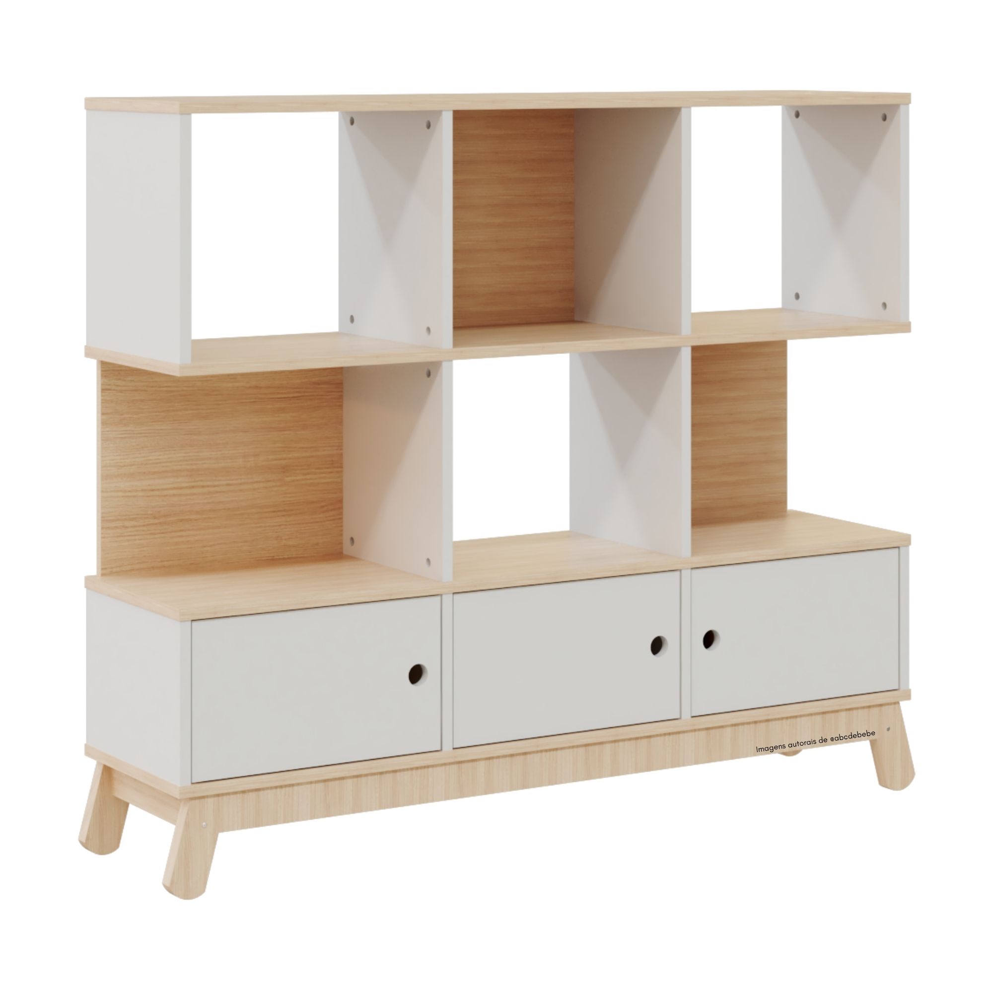 Com linhas leves e estrutura bem planejada, ela combina beleza e praticidade em perfeita harmonia. Suas prateleiras e nichos oferecem amplo espaço para organizar brinquedos, livros, objetos decorativos e acessórios do dia a dia, enquanto suas três portas inferiores garantem um visual limpo e elegante 🌿.