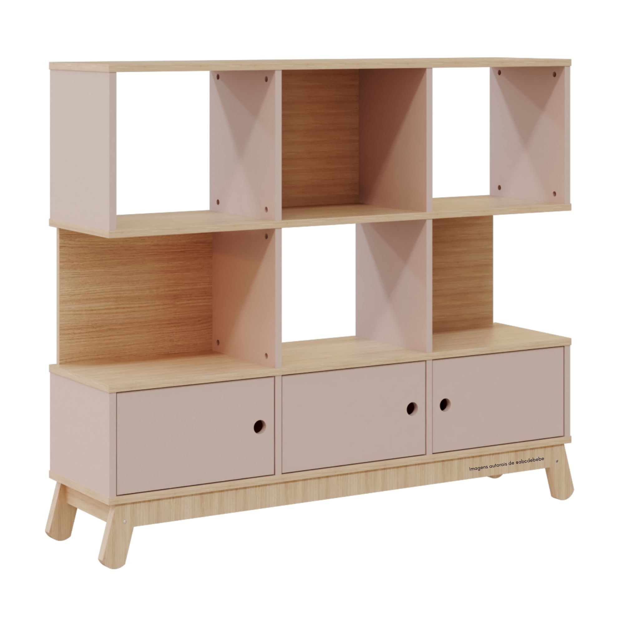 Com linhas leves e estrutura bem planejada, ela combina beleza e praticidade em perfeita harmonia. Suas prateleiras e nichos oferecem amplo espaço para organizar brinquedos, livros, objetos decorativos e acessórios do dia a dia, enquanto suas três portas inferiores garantem um visual limpo e elegante 🌿.