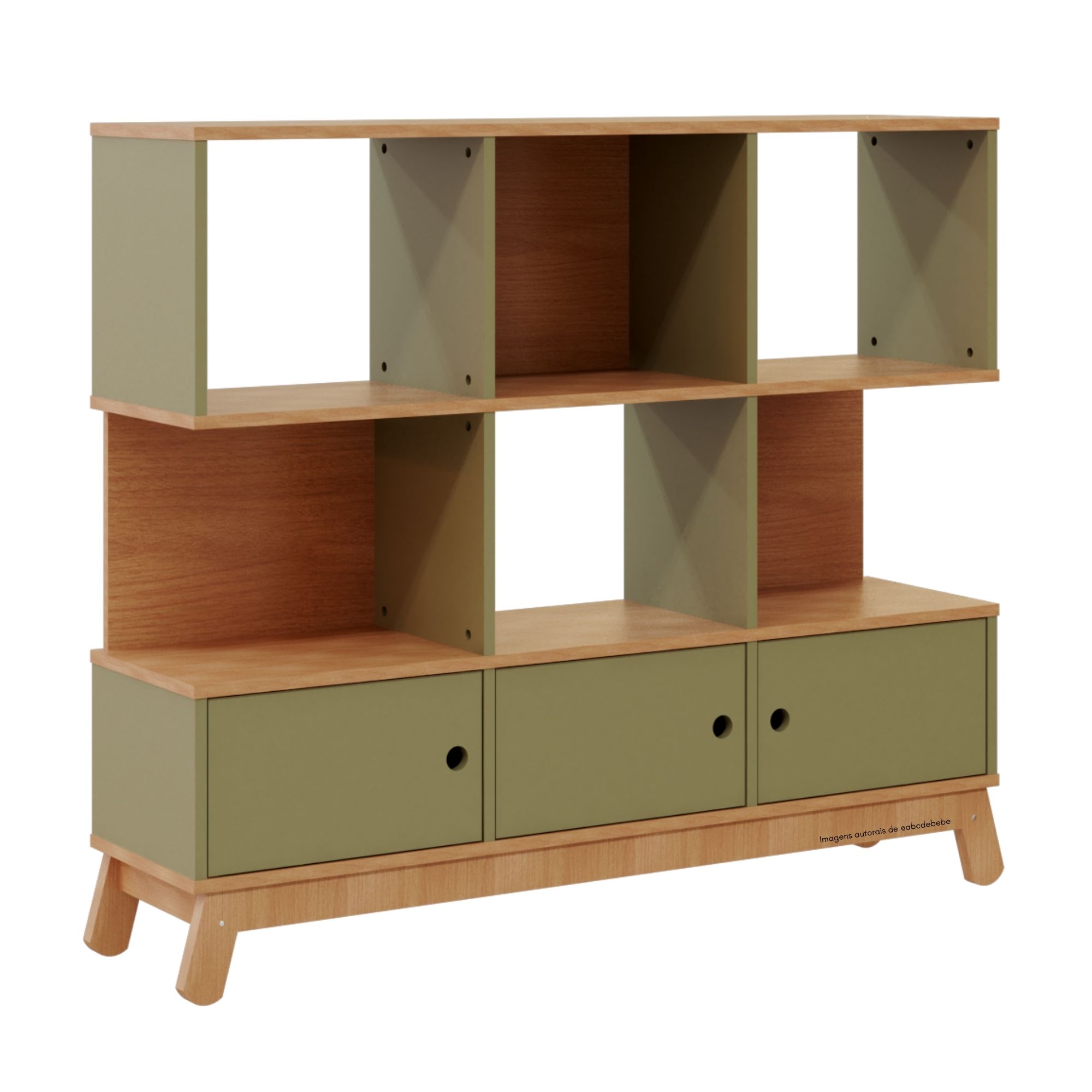 Com linhas leves e estrutura bem planejada, ela combina beleza e praticidade em perfeita harmonia. Suas prateleiras e nichos oferecem amplo espaço para organizar brinquedos, livros, objetos decorativos e acessórios do dia a dia, enquanto suas três portas inferiores garantem um visual limpo e elegante 🌿.