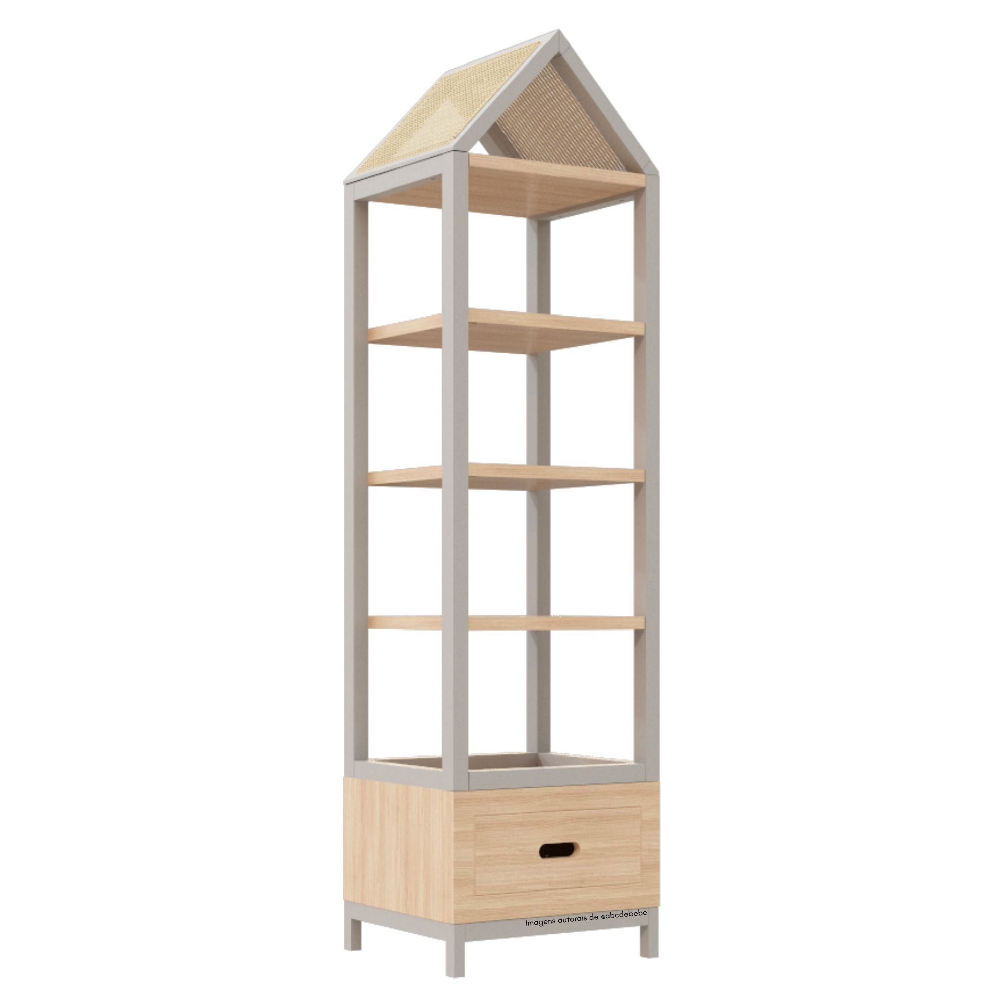 Estante Tupi 50 Com Telhado - Carvalho / Cinza