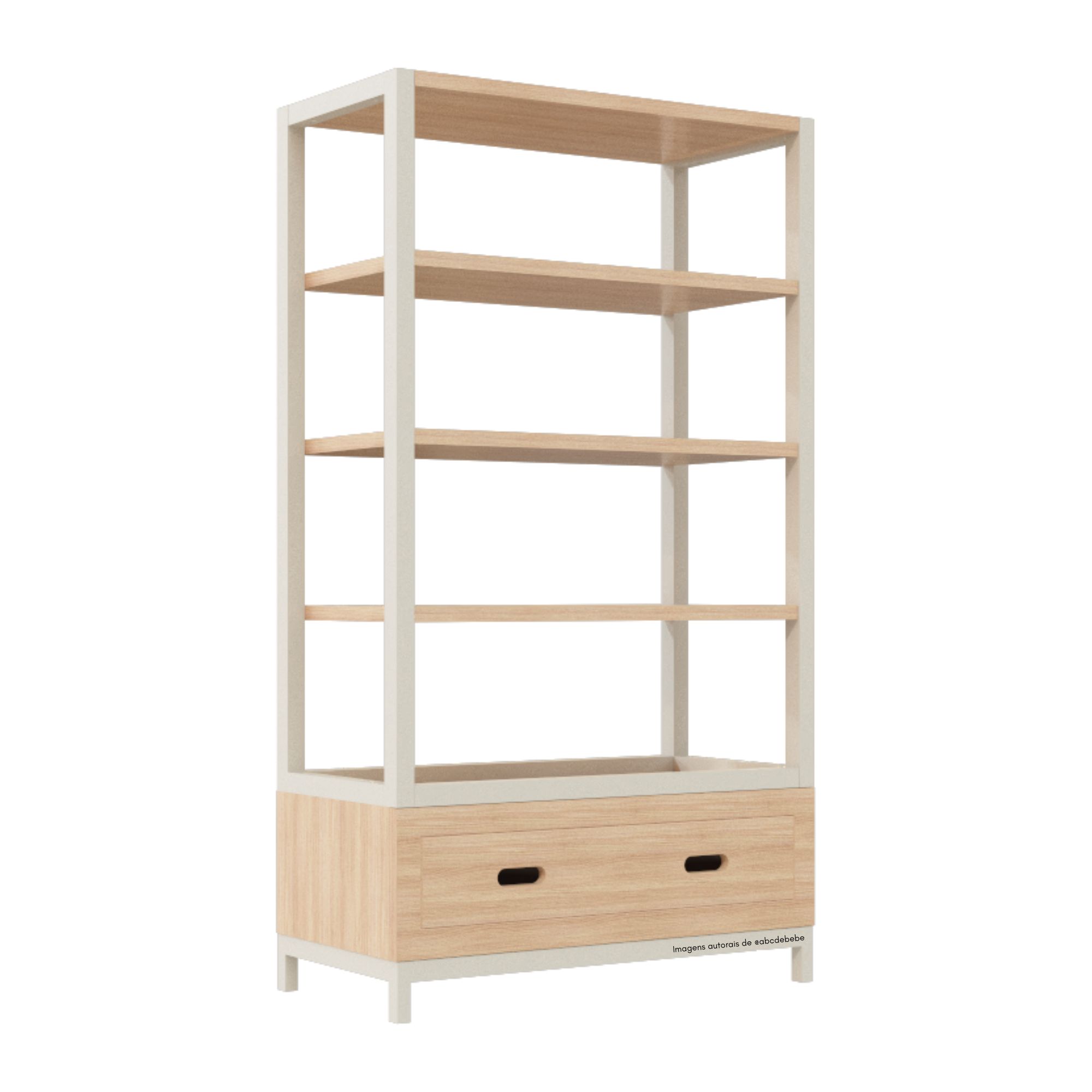 Com 4 nichos espaçosos e 1 gaveta ampla, a Estante Tupi 90 permite manter o quartinho sempre organizado, ao mesmo tempo em que estimula a autonomia e o senso de cuidado dos pequenos. Seu acabamento delicado combina com diferentes estilos de decoração, do moderno ao lúdico, criando um ambiente acolhedor e harmonioso 🧸.