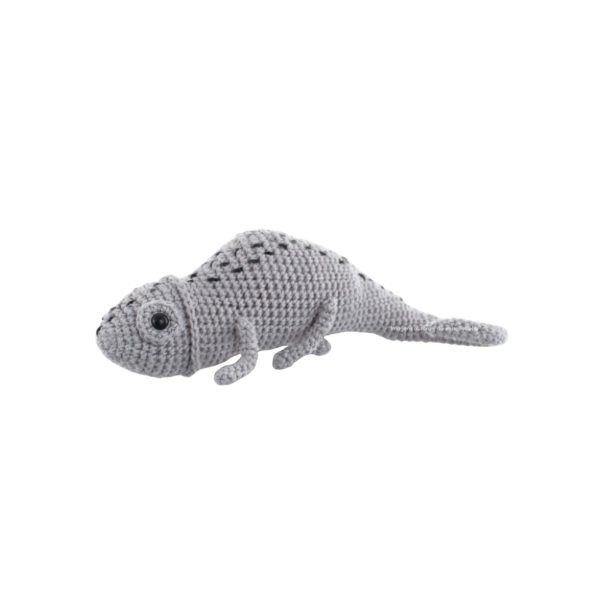 - Design encantador e lúdico, inspirado em uma iguana feita em crochê