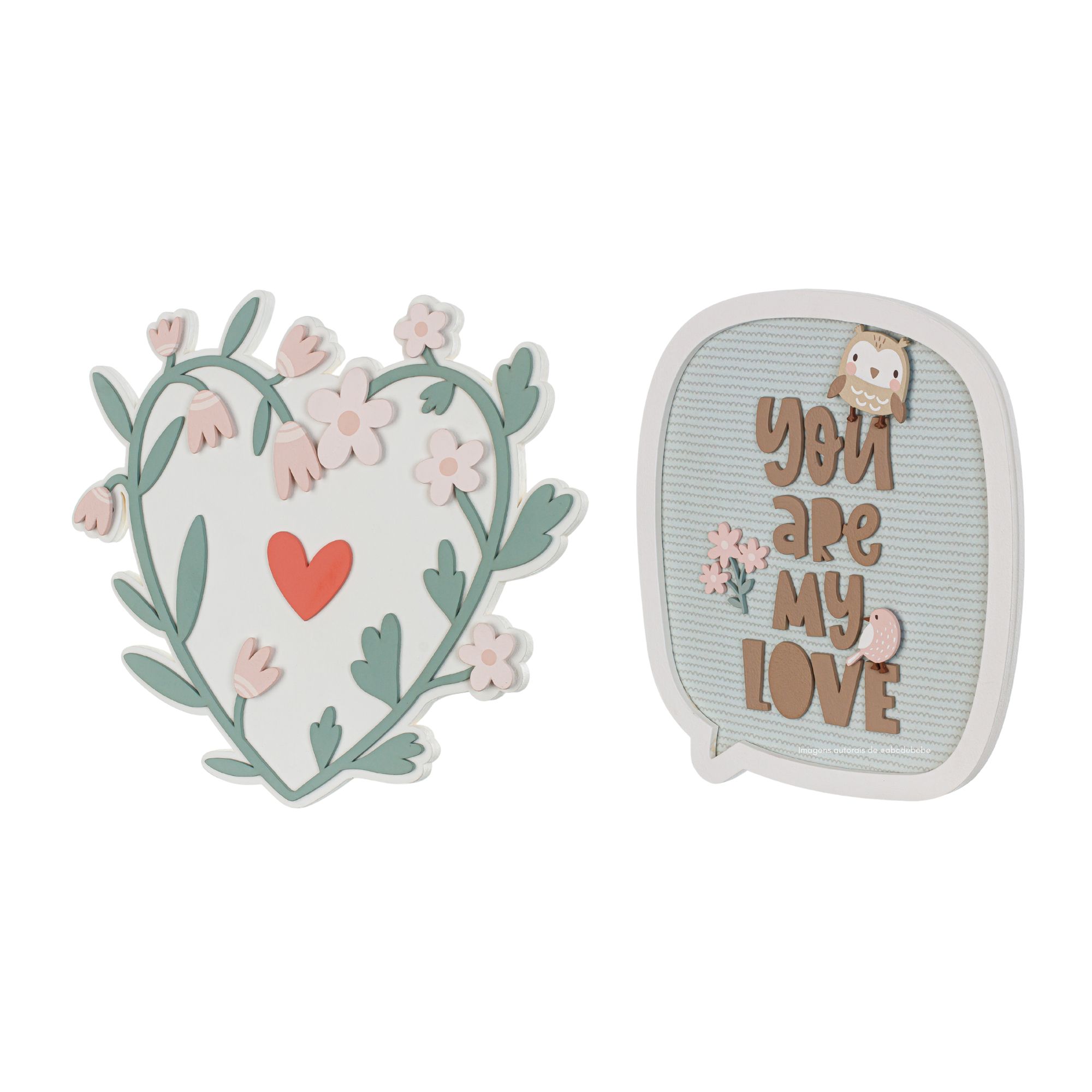 O kit permite criar uma composição charmosa na parede, trazendo identidade e afeto ao ambiente. Cada peça é pensada para transformar a decoração de forma leve e harmoniosa.