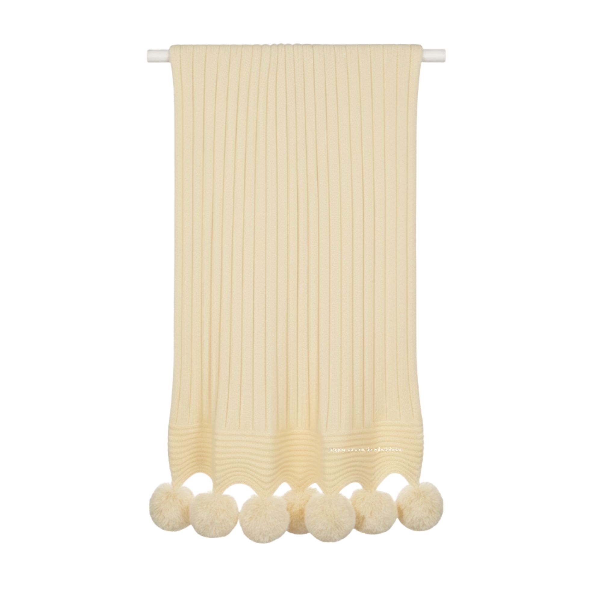 Manta De Pompom - Tricot - Trama Canelado 5x5 - Amarelo Charm