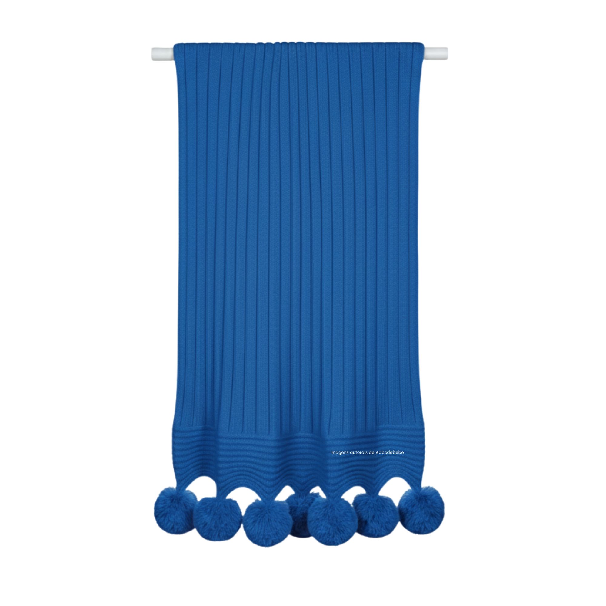 Manta De Pompom - Tricot - Trama Canelado 5x5 - Azul Fauna