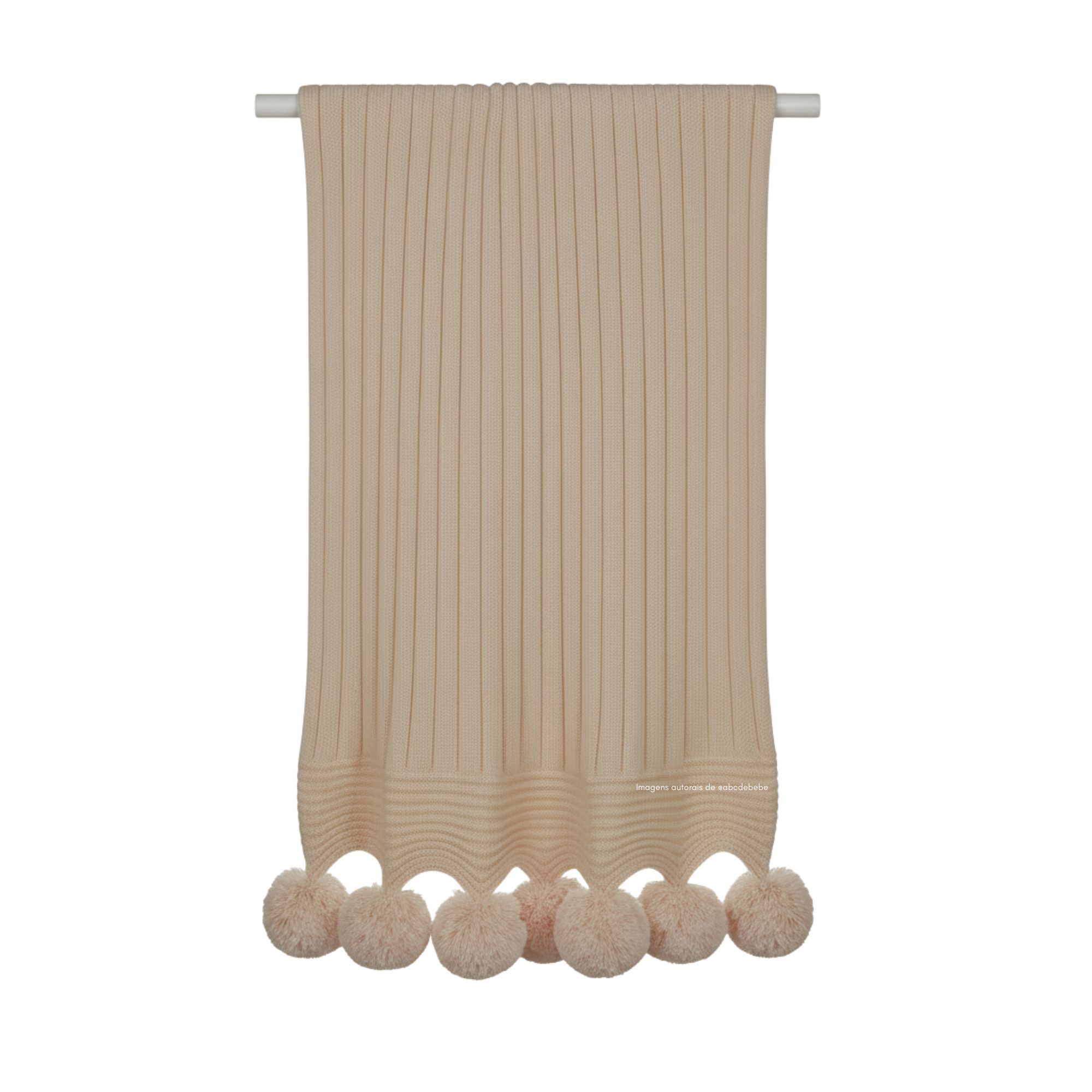 Feita à mão com tricô delicado, a Manta Pom Pom combina beleza, durabilidade e suavidade, sendo ideal para o dia a dia do bebê e também para presentear com muito amor.