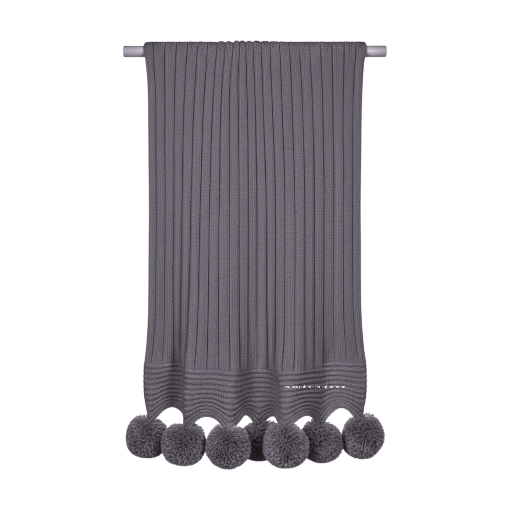 Manta De Pompom - Tricot - Trama Canelado 5x5 - Cinza New Grey