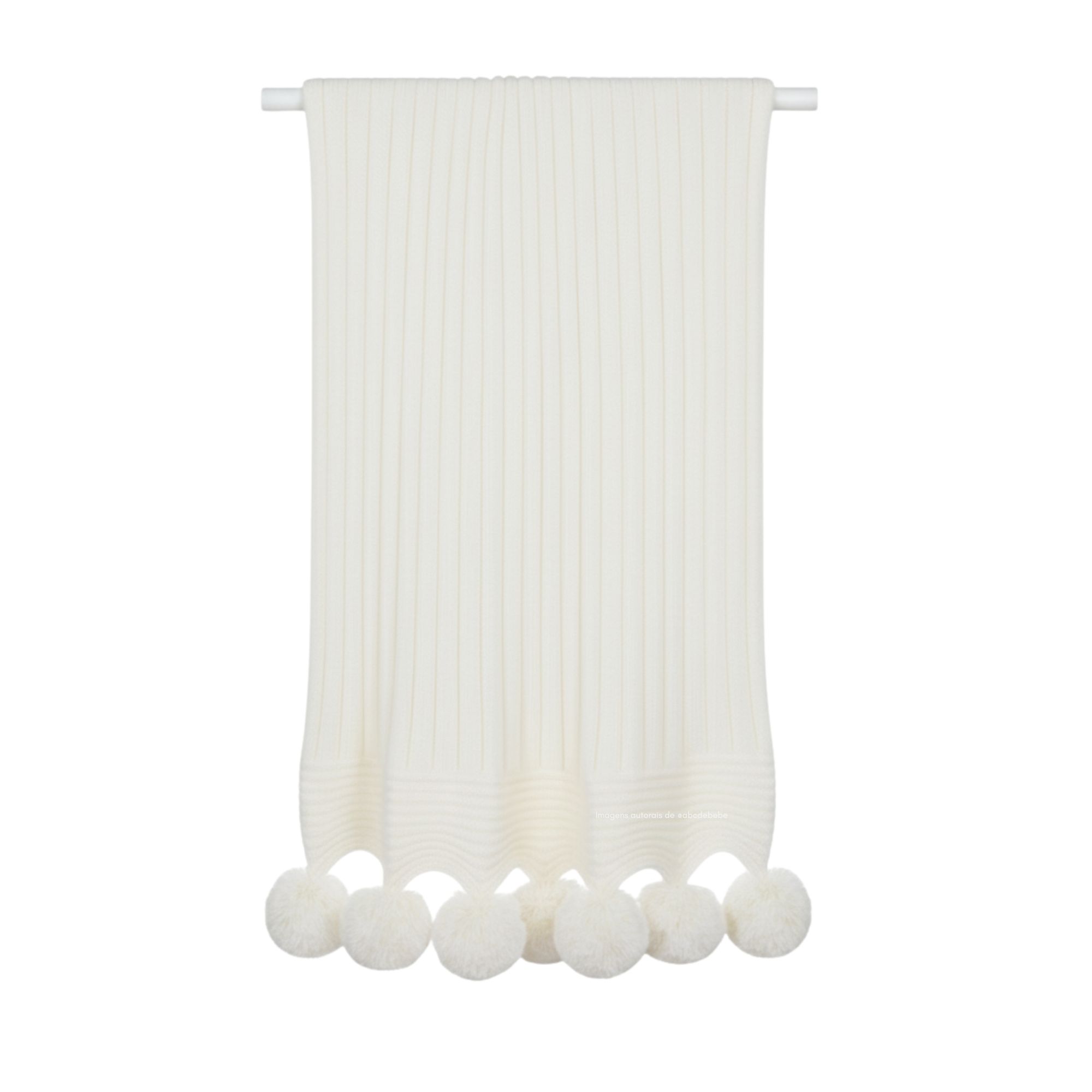 Manta De Pompom - Tricot - Trama Canelado 5x5 - Off White Natural