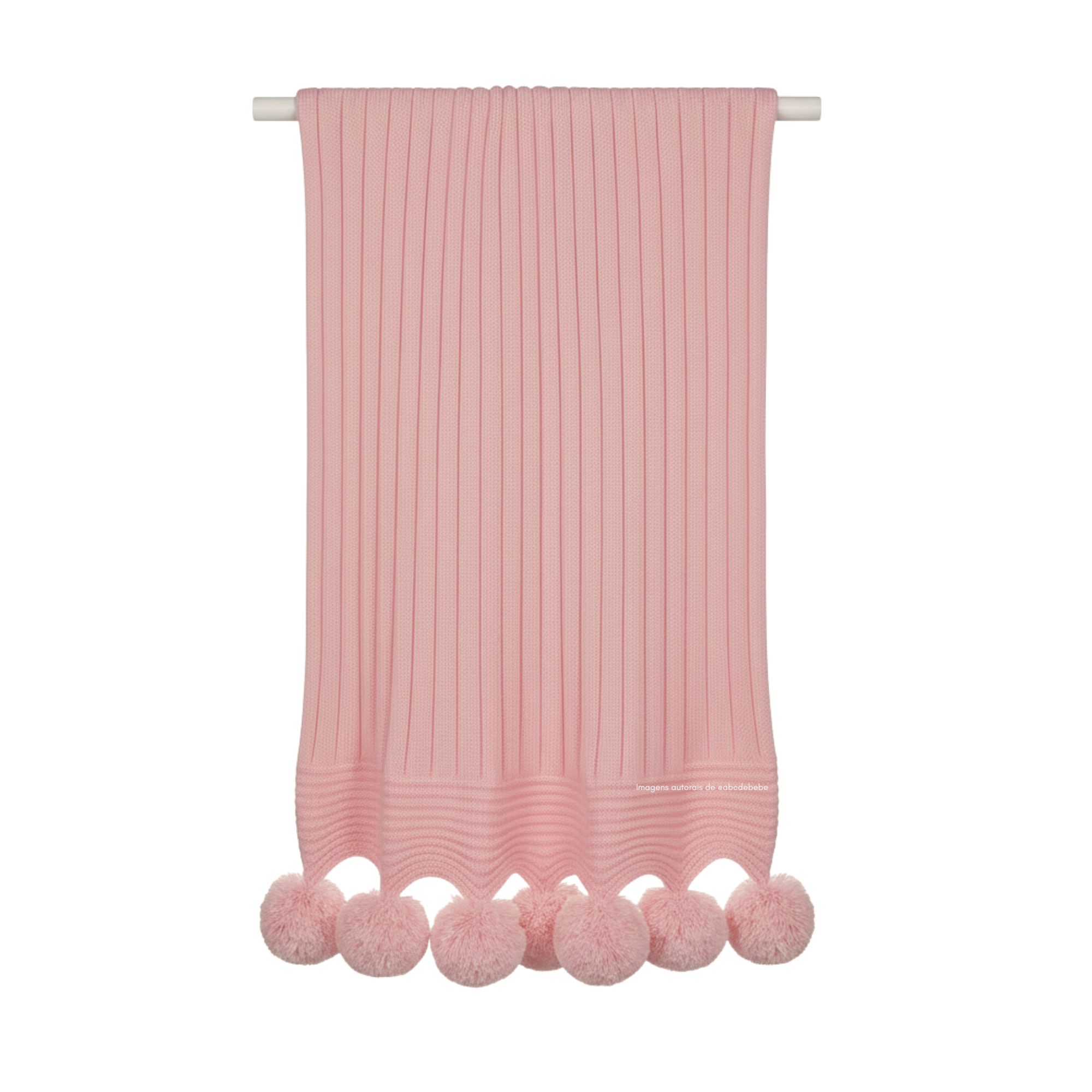 Manta De Pompom - Tricot - Trama Canelado 5x5 - Rosa M.Dolce