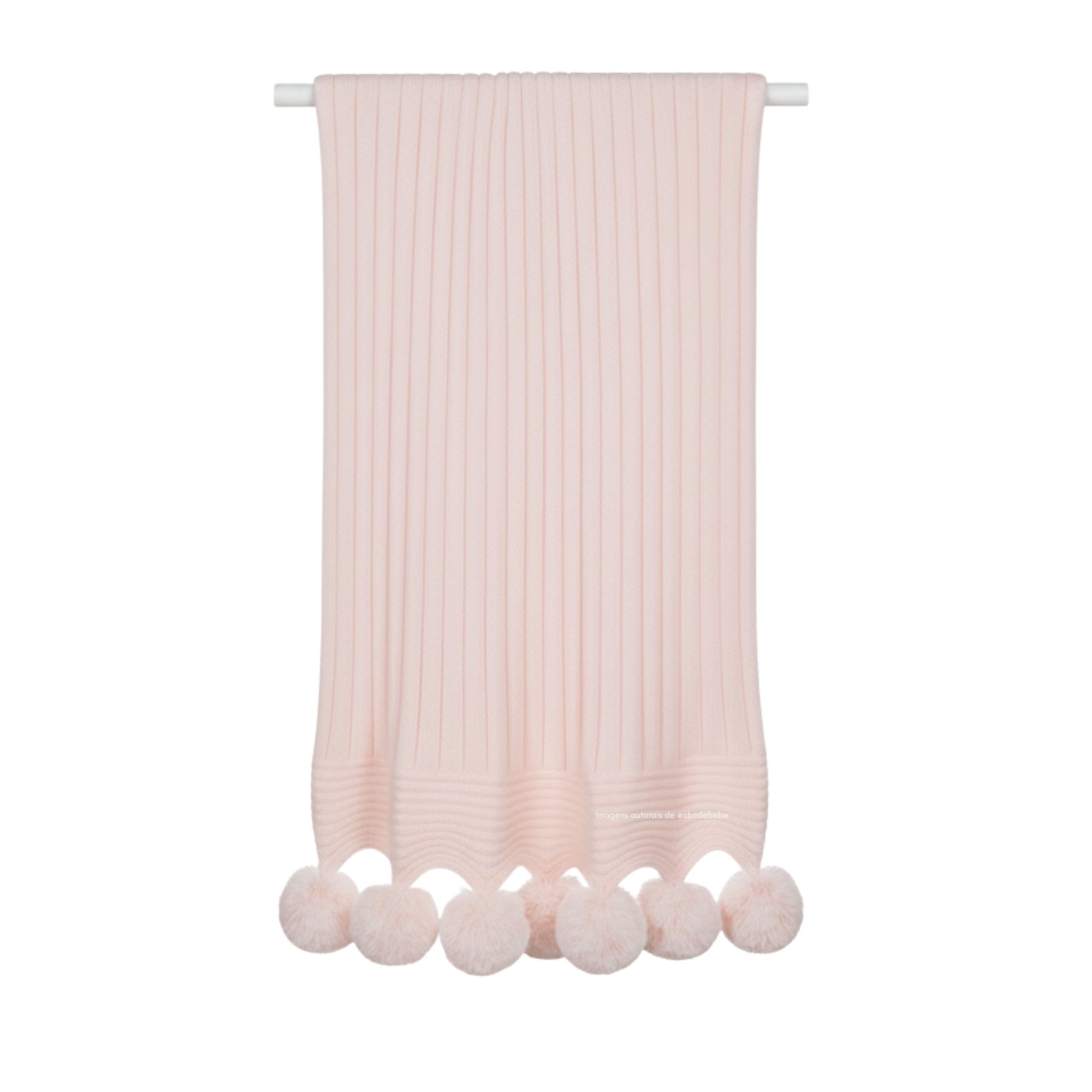Manta De Pompom - Tricot - Trama Canelado 5x5 - Rosa Pastel