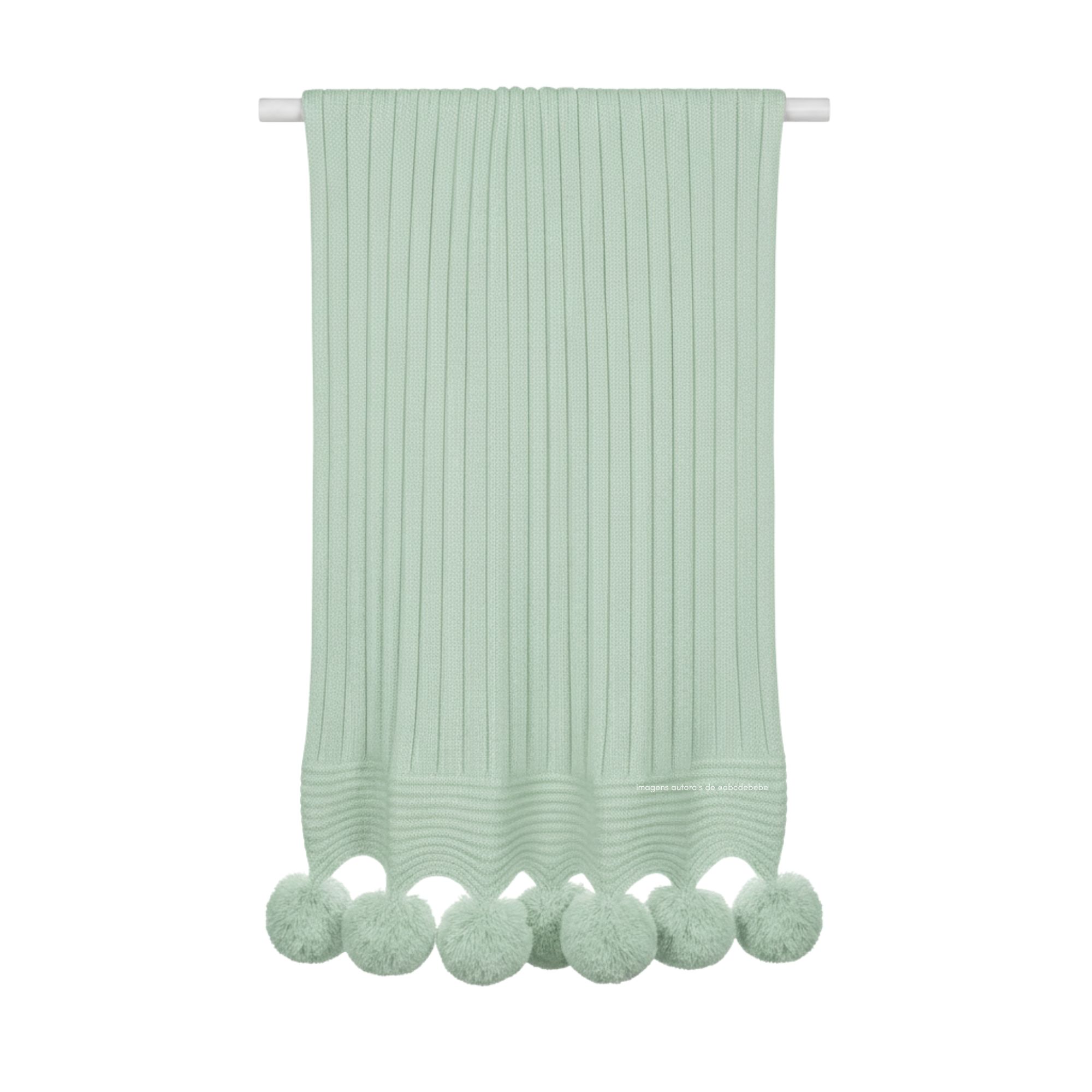 Manta De Pompom - Tricot - Trama Canelado 5x5 - Verde Limonada