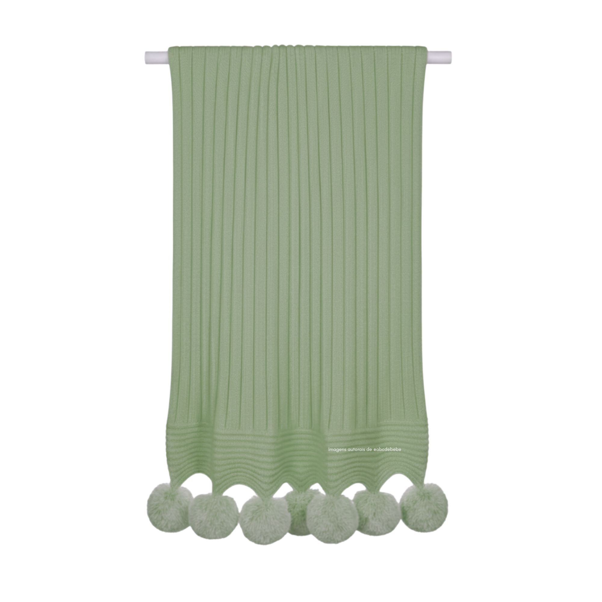 Manta De Pompom - Tricot - Trama Canelado 5x5 - Verde M.Plantação