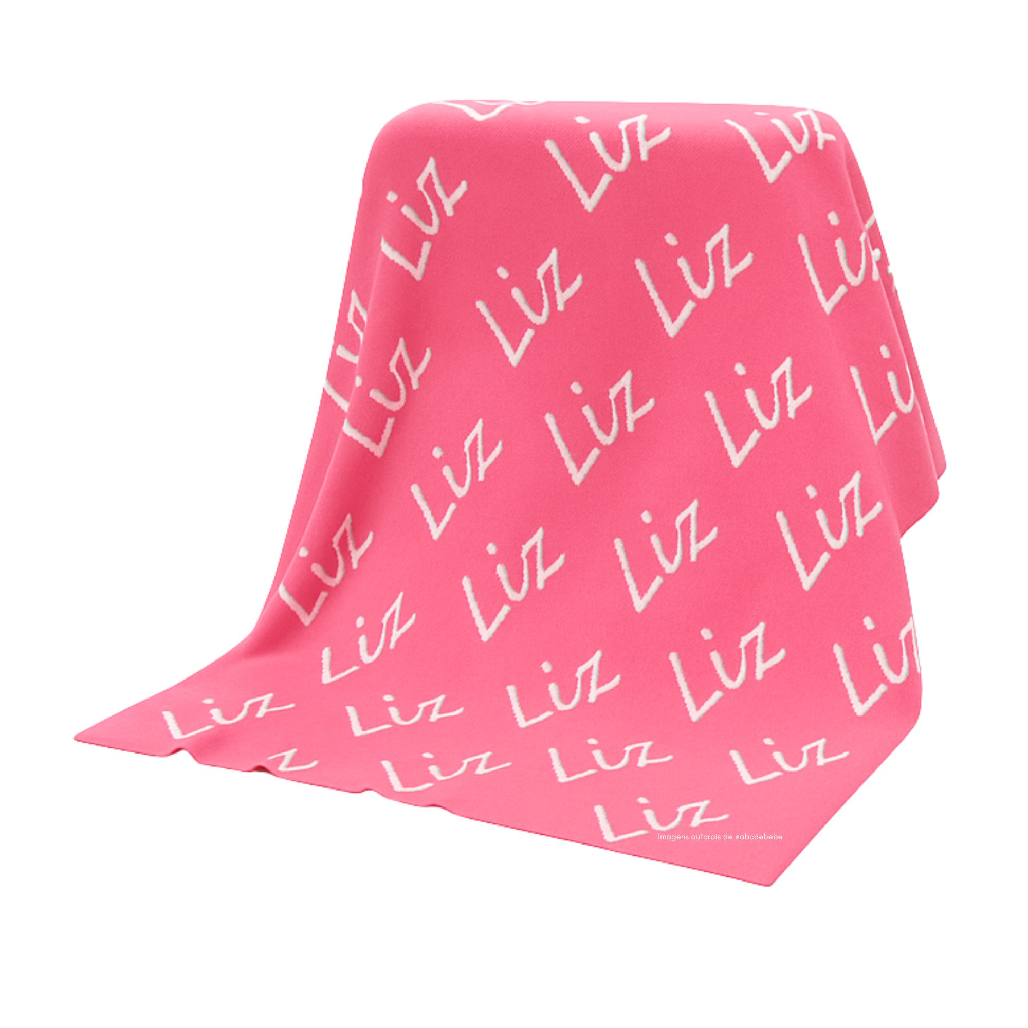 Manta Personalizada Com Nome - Tricot - Rosa Candy