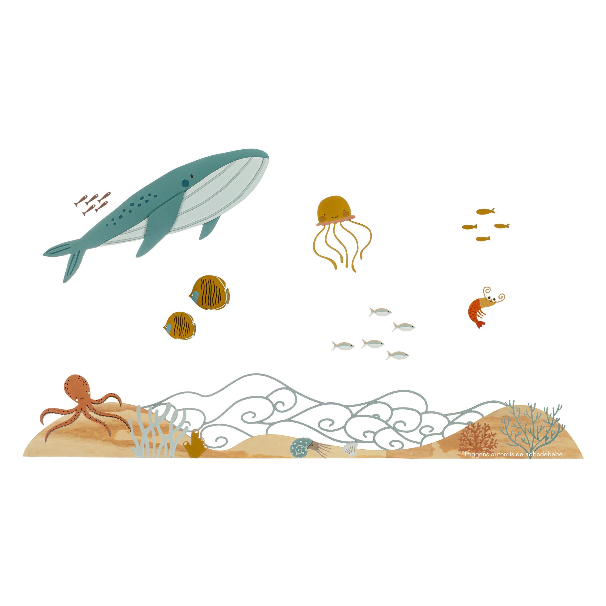 - Visual encantador com temática fundo do mar, perfeito para criar um ambiente leve e divertido