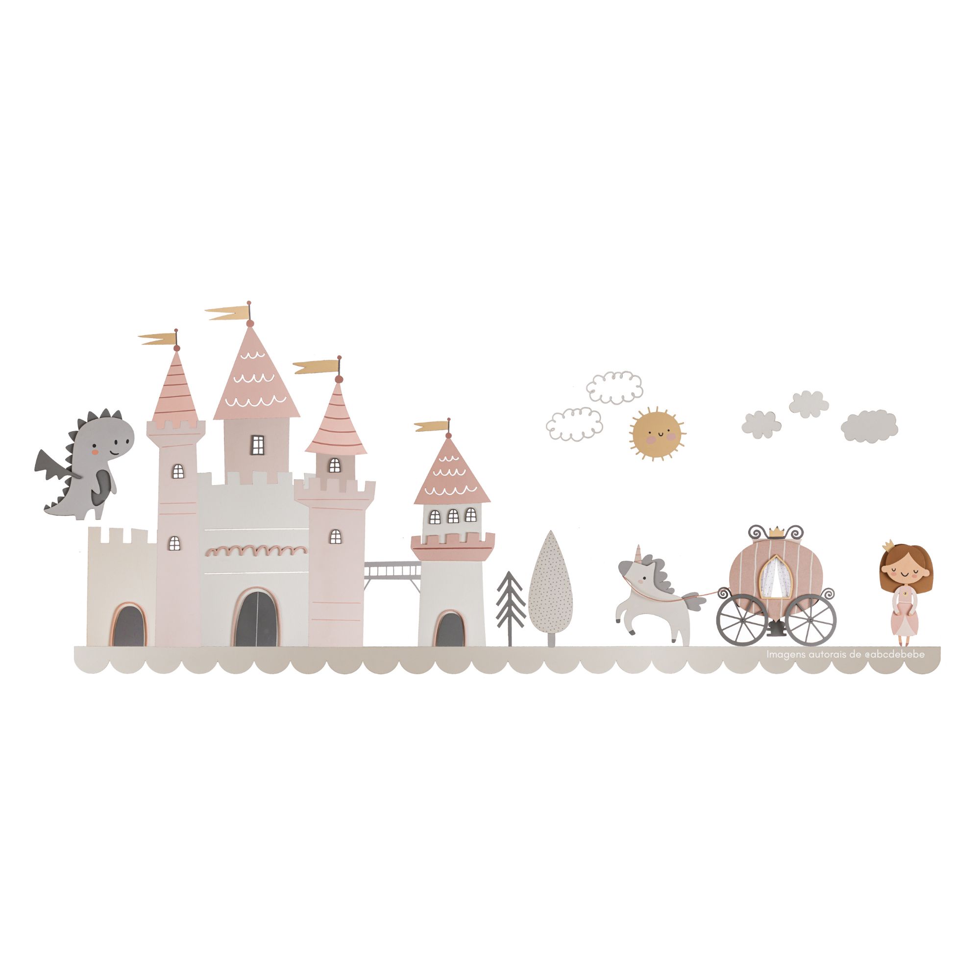 O Painel para Parede - Castelo Encantado é perfeito para mamães que desejam criar um ambiente de fantasia e magia no quartinho do bebê. Com elementos de contos de fadas, como castelo, dragão e carruagem, ele cria um espaço acolhedor e encantador, estimulando a imaginação e trazendo mais aconchego ao ambiente.