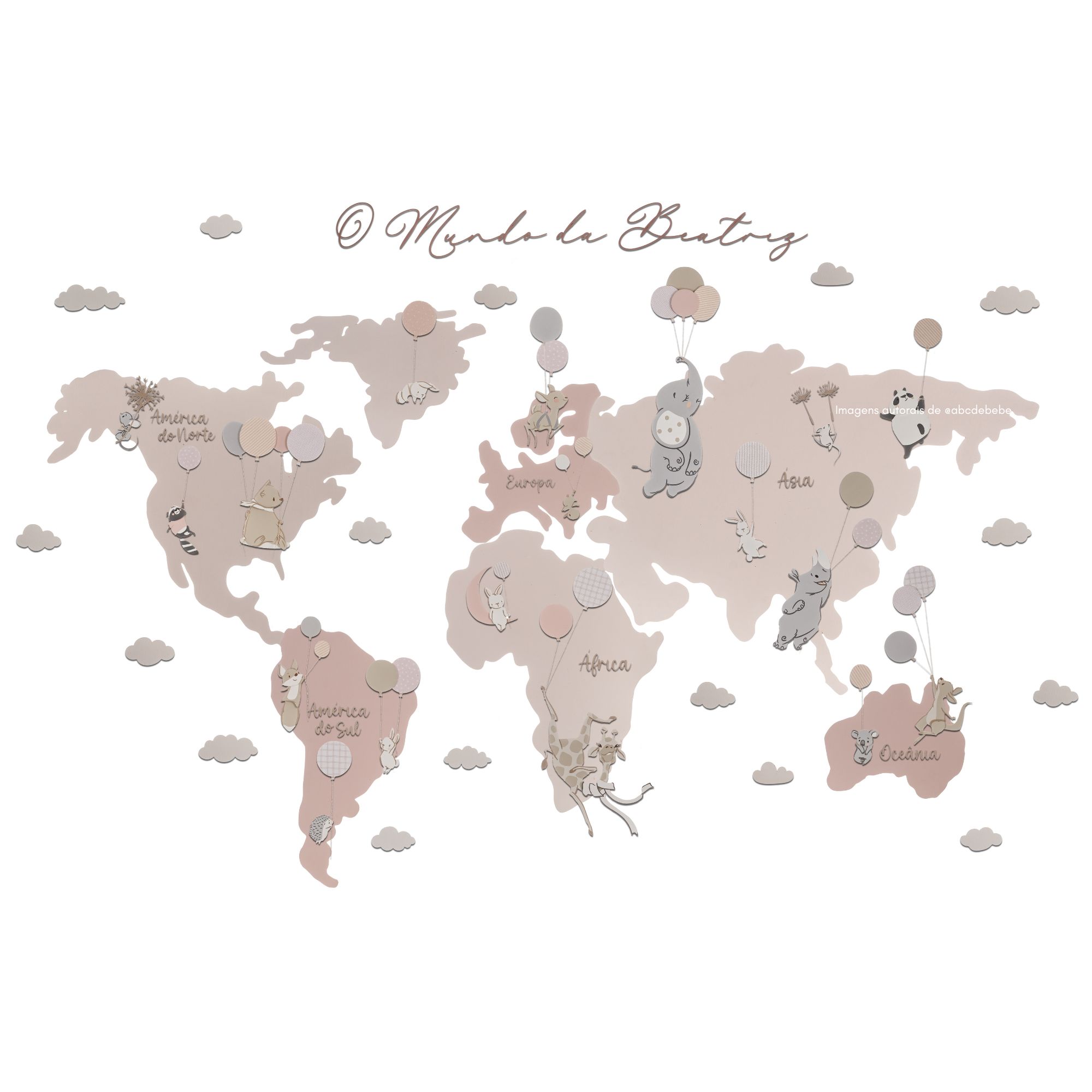Painel para Parede Mapa Mundi é aquela peça encantadora que traz delicadeza, imaginação e um toque lúdico para transformar a decoração do quartinho do bebê com muito carinho.
