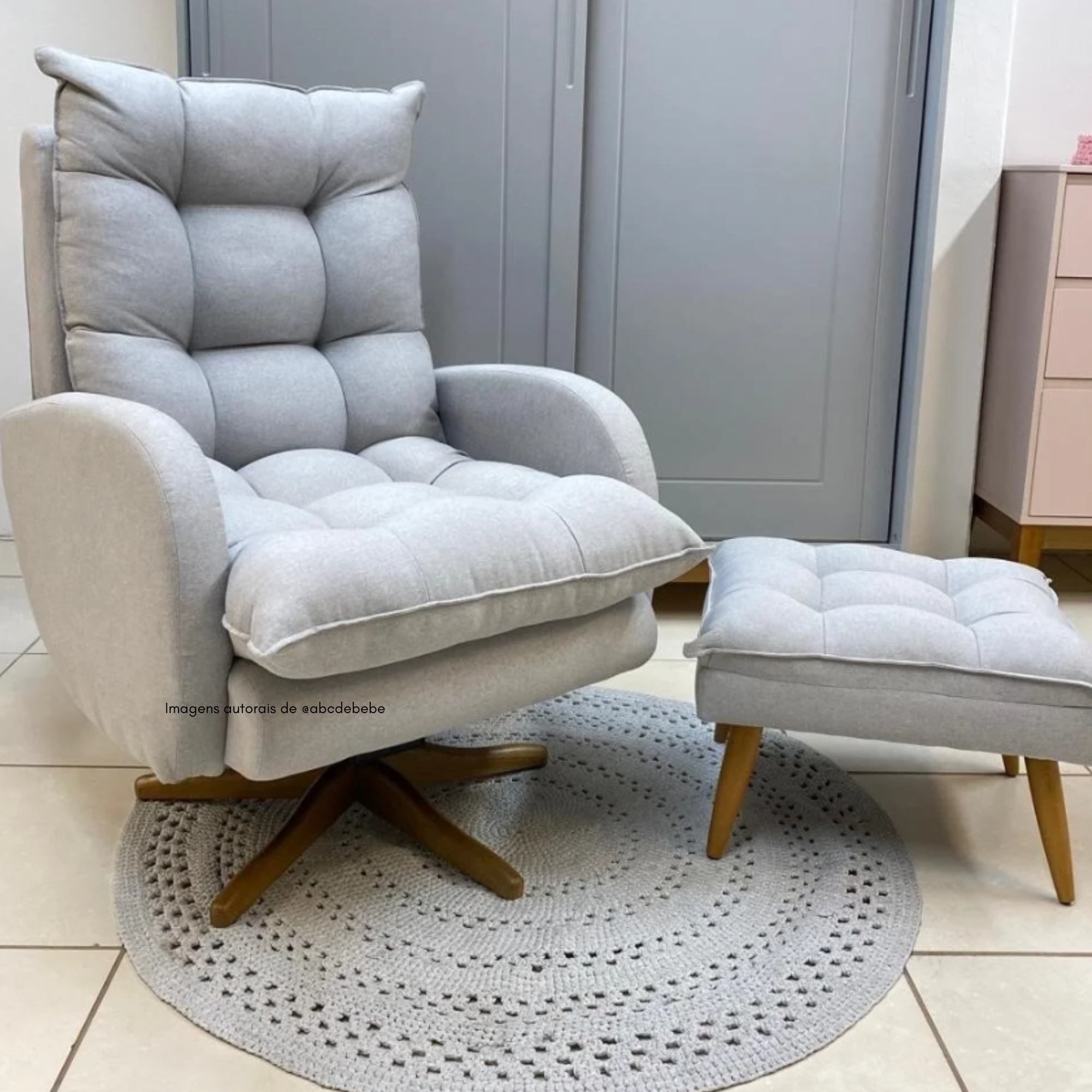 Poltrona de Amamentação Clarisse com Balanço + Puff Pé Palito – Encanto e Conforto para o Quarto do Bebê
