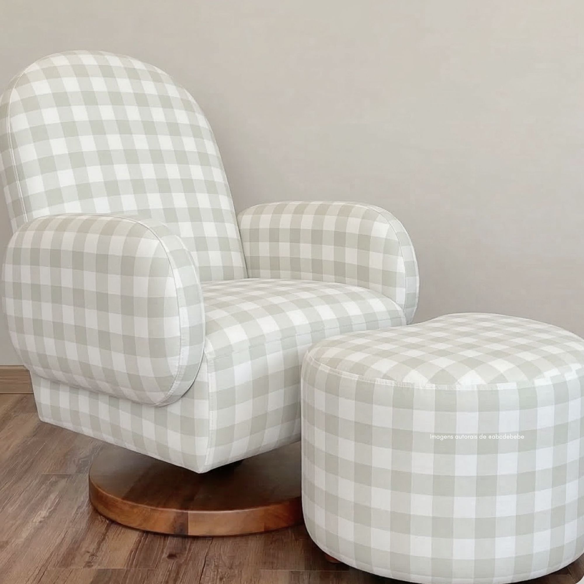 Outro grande diferencial é que o tecido da poltrona e do puff é impermeável, trazendo muito mais praticidade para o dia a dia das mamães. Isso ajuda a proteger contra líquidos, respingos ou pequenos acidentes, facilitando a limpeza e mantendo o visual da poltrona sempre bonito.