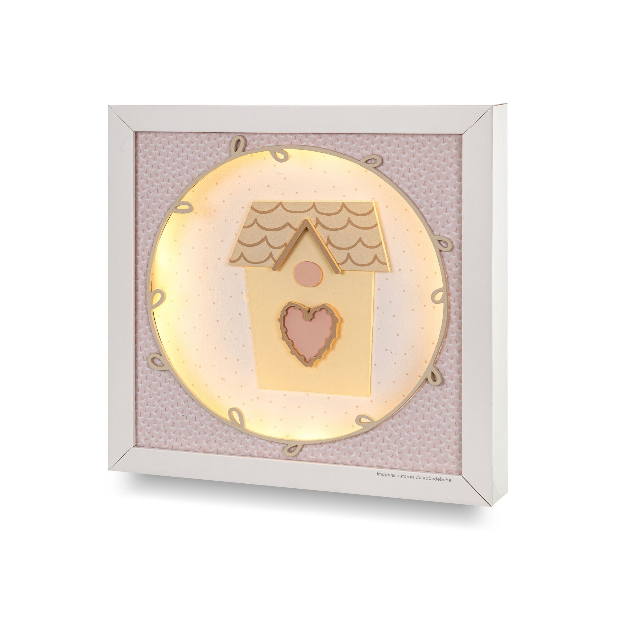 O Quadro de Luz Casa é aquele detalhe que faz toda a diferença na decoração do quartinho. Seu design delicado combina facilmente com diversos estilos, trazendo charme, suavidade e um toque lúdico ao ambiente.