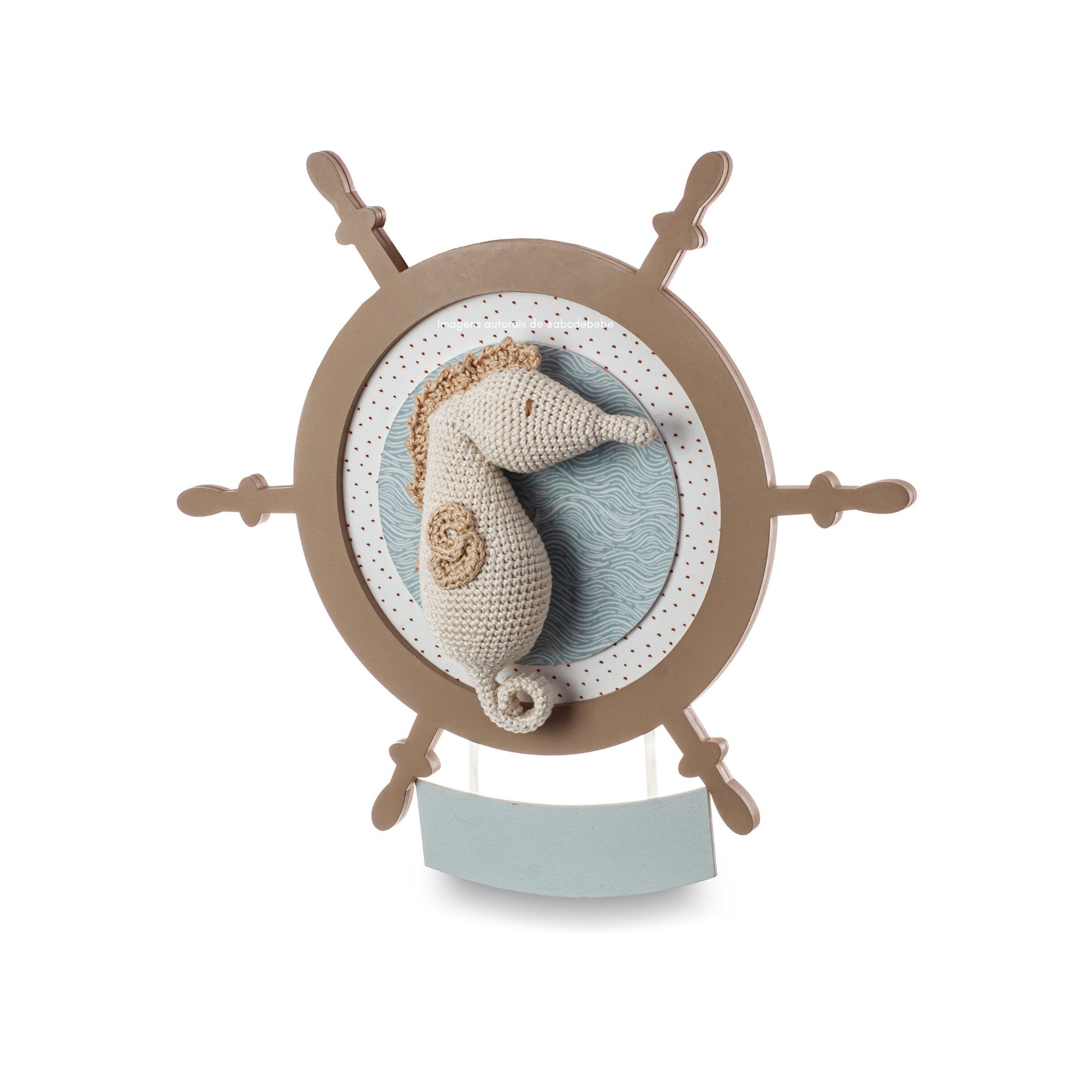Quadro Amigurumi Cavalo Marinho é aquela peça encantadora que traz delicadeza, afeto e um toque artesanal para decorar o quartinho do bebê com muito carinho e personalidade.