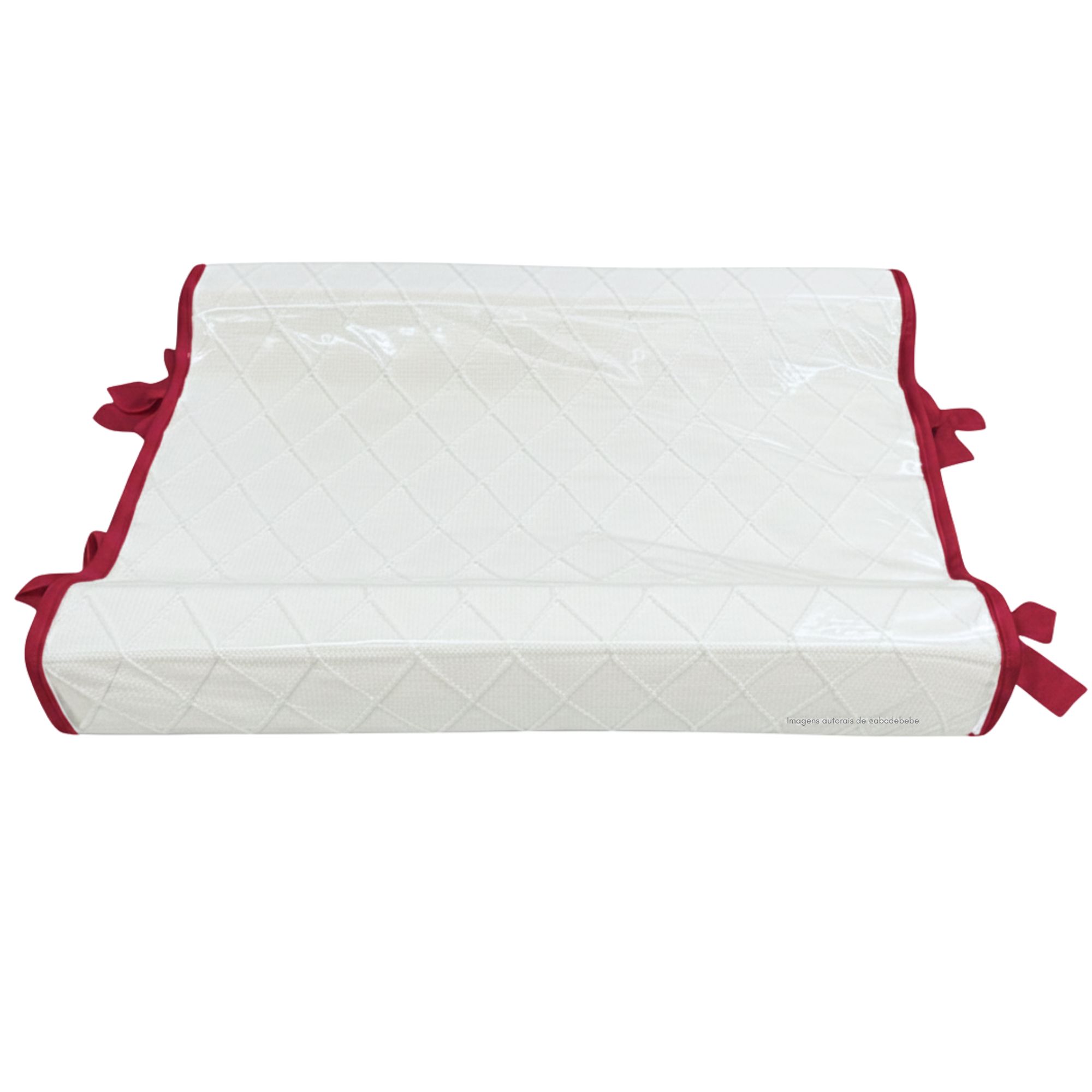 Confeccionado em tricô Seridó com trama em losangos, o trocador oferece um toque aconchegante e suave para a pele do bebê. Seu enchimento macio garante apoio confortável, enquanto a capa plástica transparente com bordinhas e laço de tricô protege contra líquidos e facilita a limpeza no dia a dia 🌿.